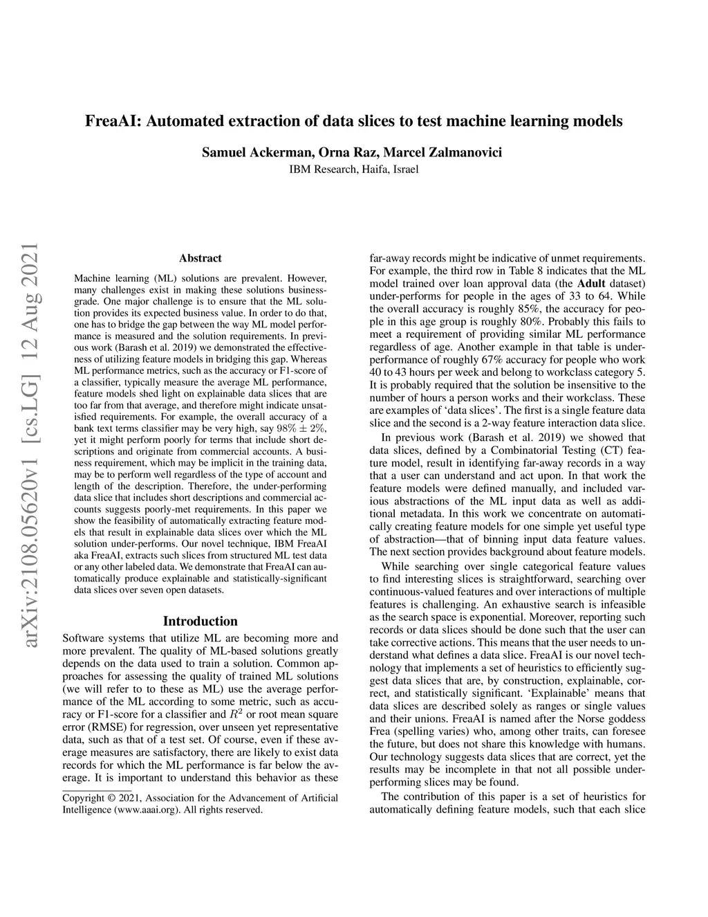 Machine learning (ML) solutions are prevalent. However, many challenges exist in making these solutions business-grade. One major challenge is to ensure that the ML solution provides its expected business value. In order to do that, one has to bridge the gap between the way ML model performance is measured and the solution requirements. In previous work (Barash et al, "Bridging the gap...") we demonstrated the effectiveness of utilizing feature models in bridging this gap. Whereas ML performance metrics, such as the accuracy or F1-score of a classifier, typically measure the average ML performance, feature models shed light on explainable data slices that are too far from that average, and therefore might indicate unsatisfied requirements. For example, the overall accuracy of a bank text terms classifier may be very high, say , yet it might perform poorly for terms that include short descriptions and originate from commercial accounts. A business requirement, which may be implicit in the training data, may be to perform well regardless of the type of account and length of the description. Therefore, the under-performing data slice that includes short descriptions and commercial accounts suggests poorly-met requirements. In this paper we show the feasibility of automatically extracting feature models that result in explainable data slices over which the ML solution under-performs. Our novel technique, IBM FreaAI aka FreaAI, extracts such slices from structured ML test data or any other labeled data. We demonstrate that FreaAI can automatically produce explainable and statistically-significant data slices over seven open datasets.