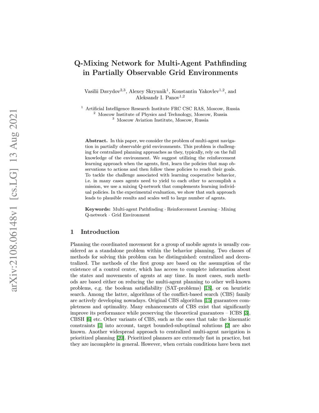 Q-Mixing Network for Multi-Agent Pathfinding in Partially Observable