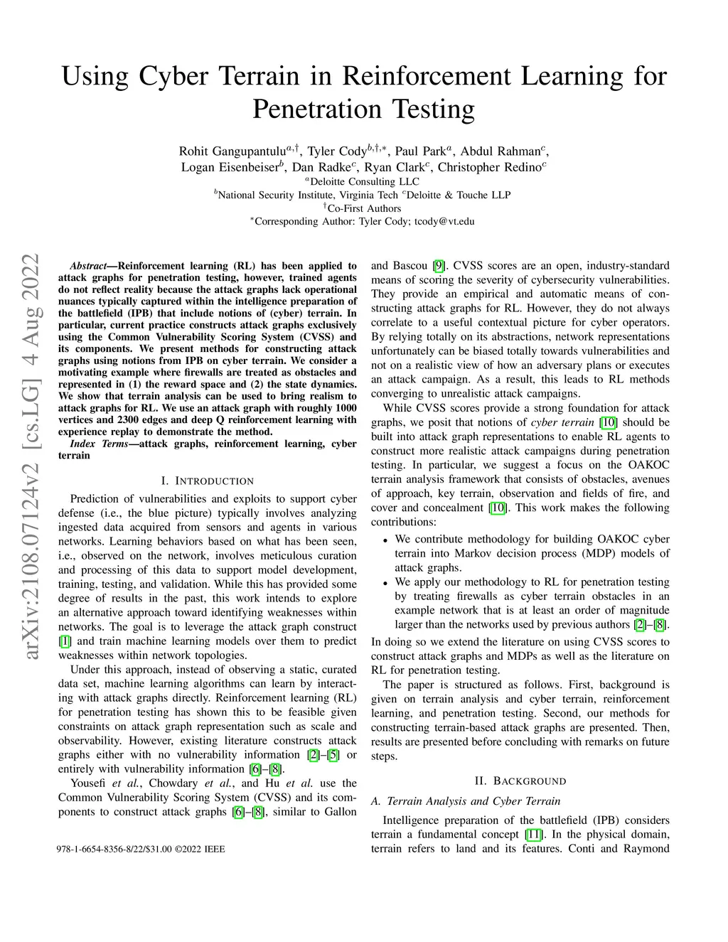 Using Cyber Terrain in Reinforcement Learning for Penetration Testing