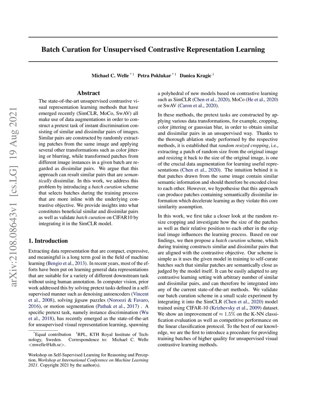 Batch Curation for Unsupervised Contrastive Representation Learning