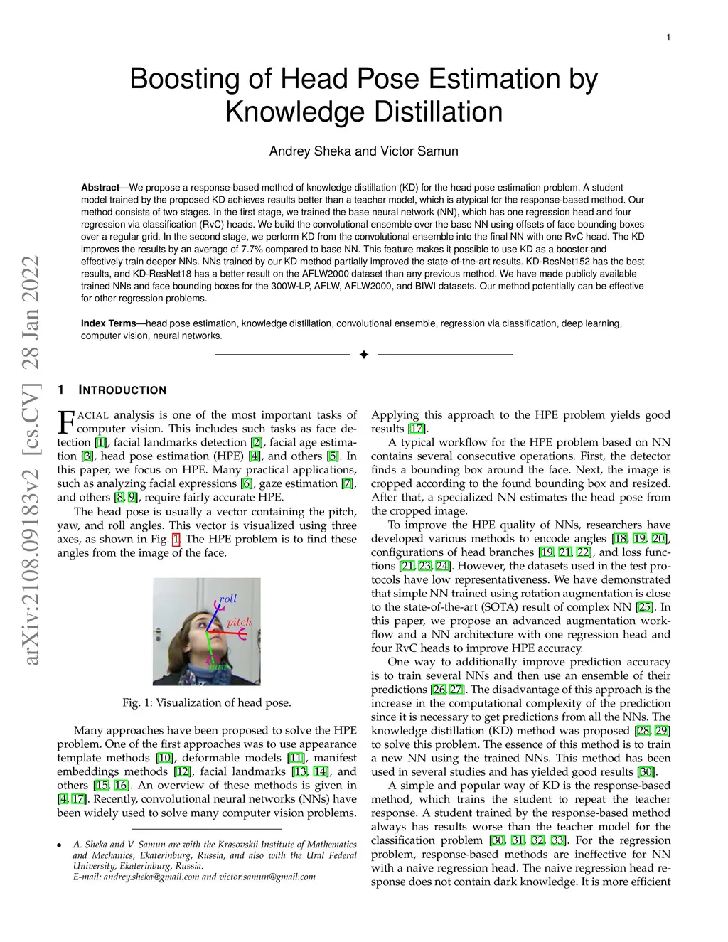 Boosting of Head Pose Estimation by Knowledge Distillation