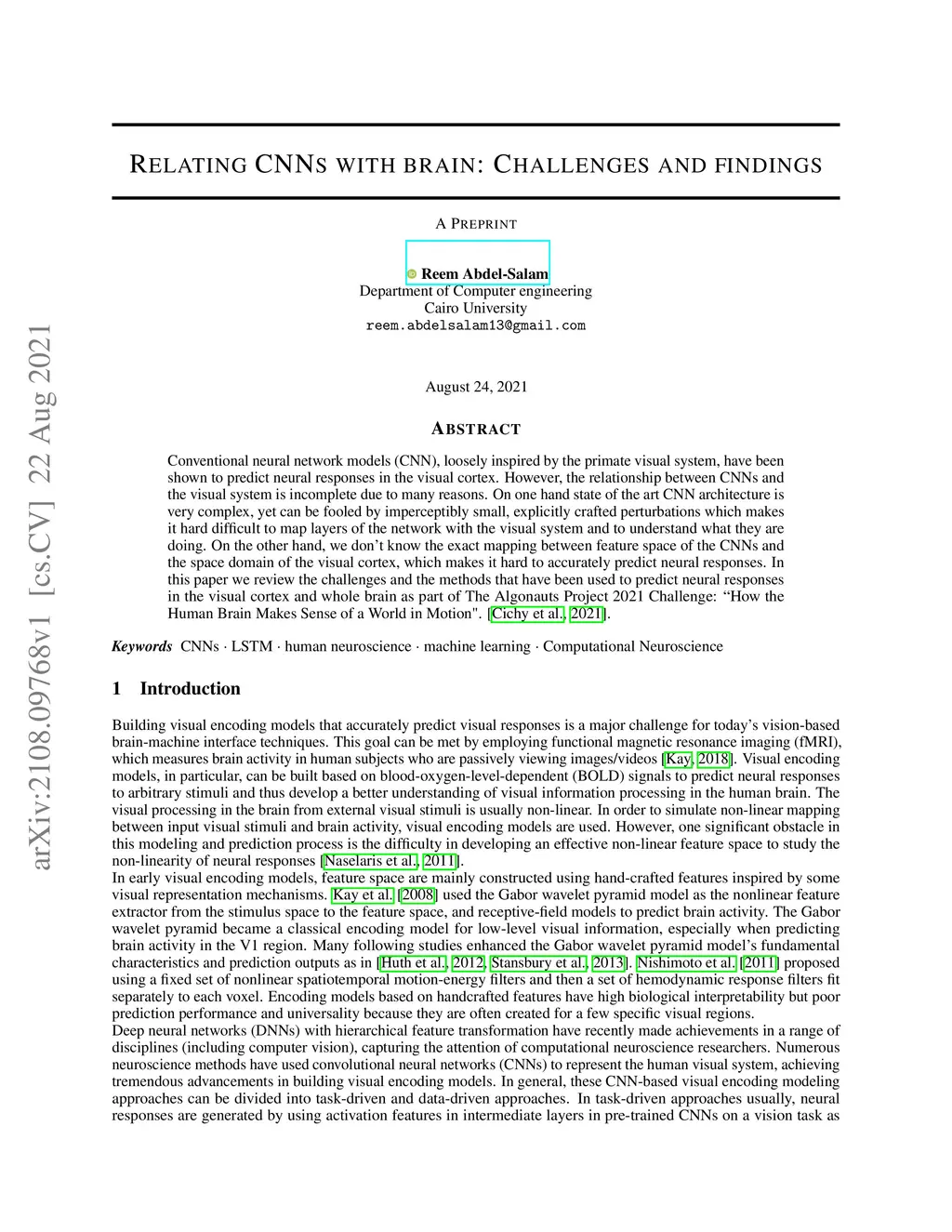 Conventional neural network models (CNN), loosely inspired by the primate visual system, have been shown to predict neural responses in the visual cortex. However, the relationship between CNNs and the visual system is incomplete due to many reasons. On one hand state of the art CNN architecture is very complex, yet can be fooled by imperceptibly small, explicitly crafted perturbations which makes it hard difficult to map layers of the network with the visual system and to understand what they are doing. On the other hand, we don't know the exact mapping between feature space of the CNNs and the space domain of the visual cortex, which makes it hard to accurately predict neural responses. In this paper we review the challenges and the methods that have been used to predict neural responses in the visual cortex and whole brain as part of The Algonauts Project 2021 Challenge: "How the Human Brain Makes Sense of a World in Motion".