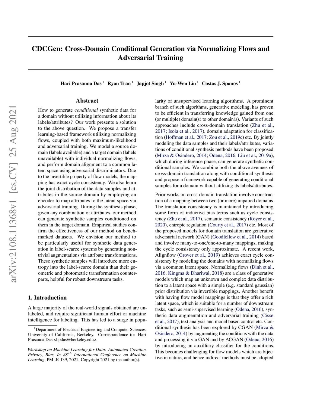 CDCGen: Cross-Domain Conditional Generation via Normalizing Flows and