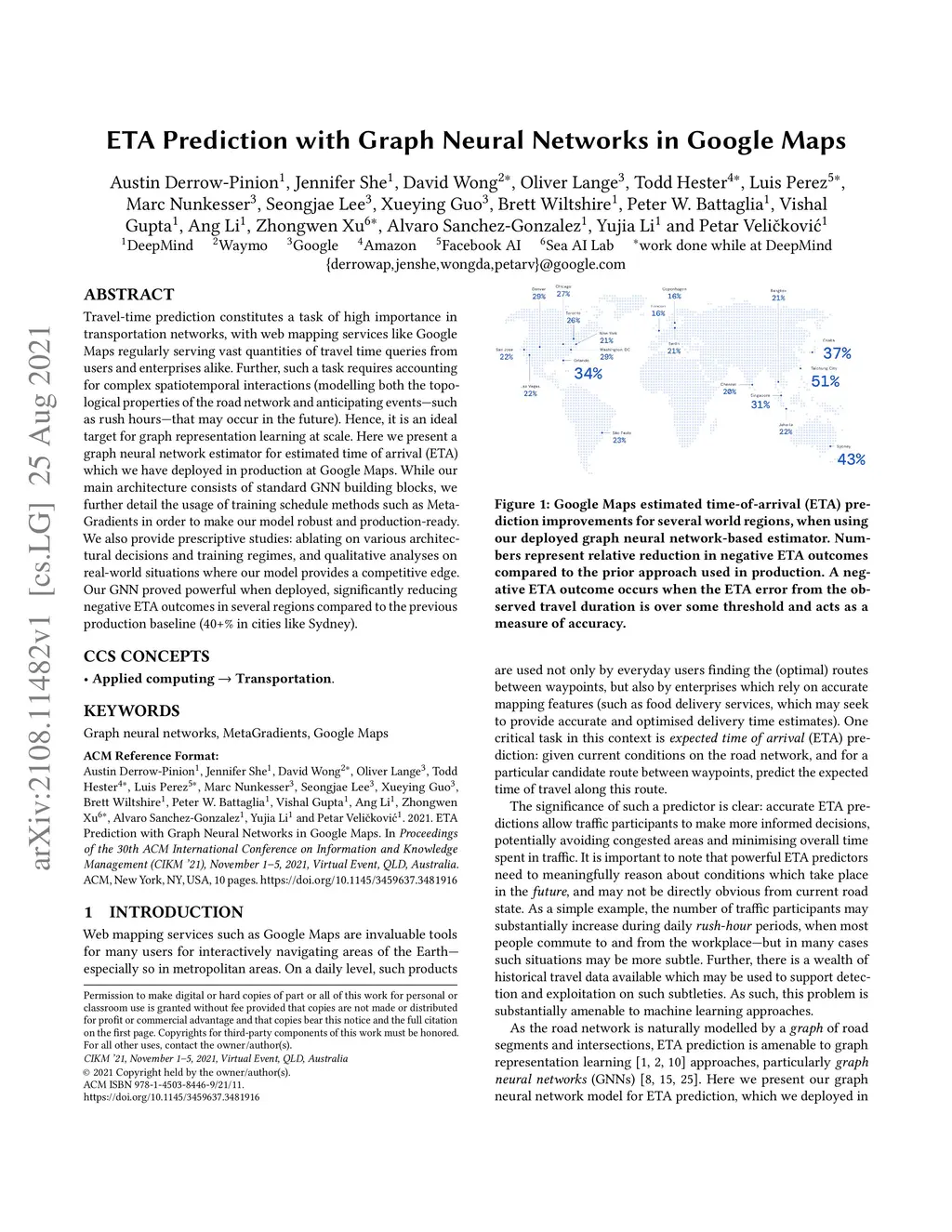 Travel-time prediction constitutes a task of high importance in transportation networks, with web mapping services like Google Maps regularly serving vast quantities of travel time queries from users and enterprises alike. Further, such a task requires accounting for complex spatiotemporal interactions (modelling both the topological properties of the road network and anticipating events -- such as rush hours -- that may occur in the future). Hence, it is an ideal target for graph representation learning at scale. Here we present a graph neural network estimator for estimated time of arrival (ETA) which we have deployed in production at Google Maps. While our main architecture consists of standard GNN building blocks, we further detail the usage of training schedule methods such as MetaGradients in order to make our model robust and production-ready. We also provide prescriptive studies: ablating on various architectural decisions and training regimes, and qualitative analyses on real-world situations where our model provides a competitive edge. Our GNN proved powerful when deployed, significantly reducing negative ETA outcomes in several regions compared to the previous production baseline (40+% in cities like Sydney).