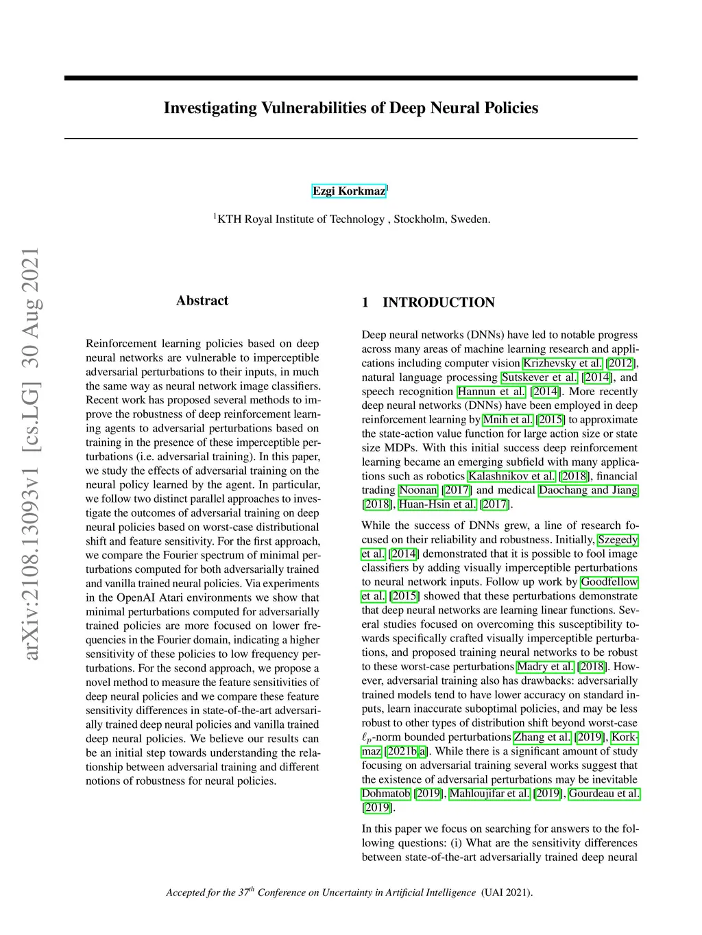 Reinforcement learning policies based on deep neural networks are vulnerable to imperceptible adversarial perturbations to their inputs, in much the same way as neural network image classifiers. Recent work has proposed several methods to improve the robustness of deep reinforcement learning agents to adversarial perturbations based on training in the presence of these imperceptible perturbations (i.e. adversarial training). In this paper, we study the effects of adversarial training on the neural policy learned by the agent. In particular, we follow two distinct parallel approaches to investigate the outcomes of adversarial training on deep neural policies based on worst-case distributional shift and feature sensitivity. For the first approach, we compare the Fourier spectrum of minimal perturbations computed for both adversarially trained and vanilla trained neural policies. Via experiments in the OpenAI Atari environments we show that minimal perturbations computed for adversarially trained policies are more focused on lower frequencies in the Fourier domain, indicating a higher sensitivity of these policies to low frequency perturbations. For the second approach, we propose a novel method to measure the feature sensitivities of deep neural policies and we compare these feature sensitivity differences in state-of-the-art adversarially trained deep neural policies and vanilla trained deep neural policies. We believe our results can be an initial step towards understanding the relationship between adversarial training and different notions of robustness for neural policies.