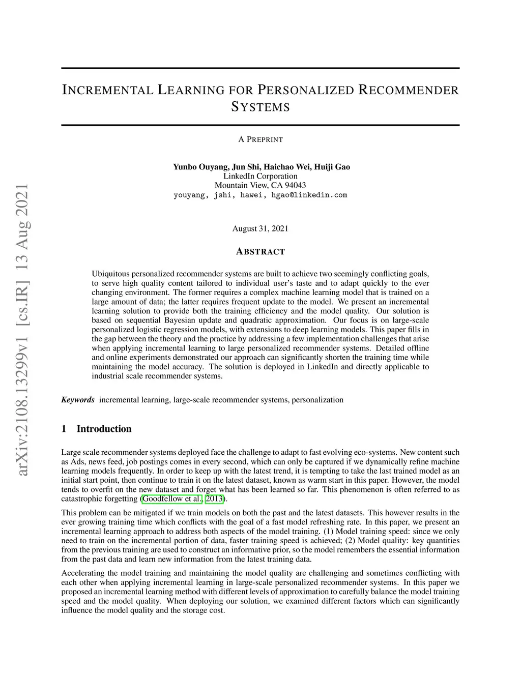 Incremental Learning for Personalized Recommender Systems