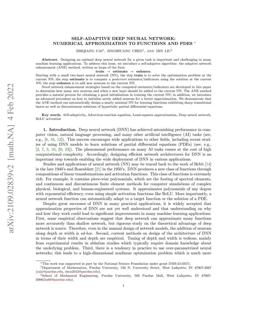 Designing an optimal deep neural network for a given task is important and challenging in many machine learning applications. To address this issue, we introduce a self-adaptive algorithm: the adaptive network enhancement (ANE) method, written as loops of the form train, estimate and enhance. Starting with a small two-layer neural network (NN), the step train is to solve the optimization problem at the current NN; the step estimate is to compute a posteriori estimator/indicators using the solution at the current NN; the step enhance is to add new neurons to the current NN. Novel network enhancement strategies based on the computed estimator/indicators are developed in this paper to determine how many new neurons and when a new layer should be added to the current NN. The ANE method provides a natural process for obtaining a good initialization in training the current NN; in addition, we introduce an advanced procedure on how to initialize newly added neurons for a better approximation. We demonstrate that the ANE method can automatically design a nearly minimal NN for learning functions exhibiting sharp transitional layers as well as discontinuous solutions of hyperbolic partial differential equations.