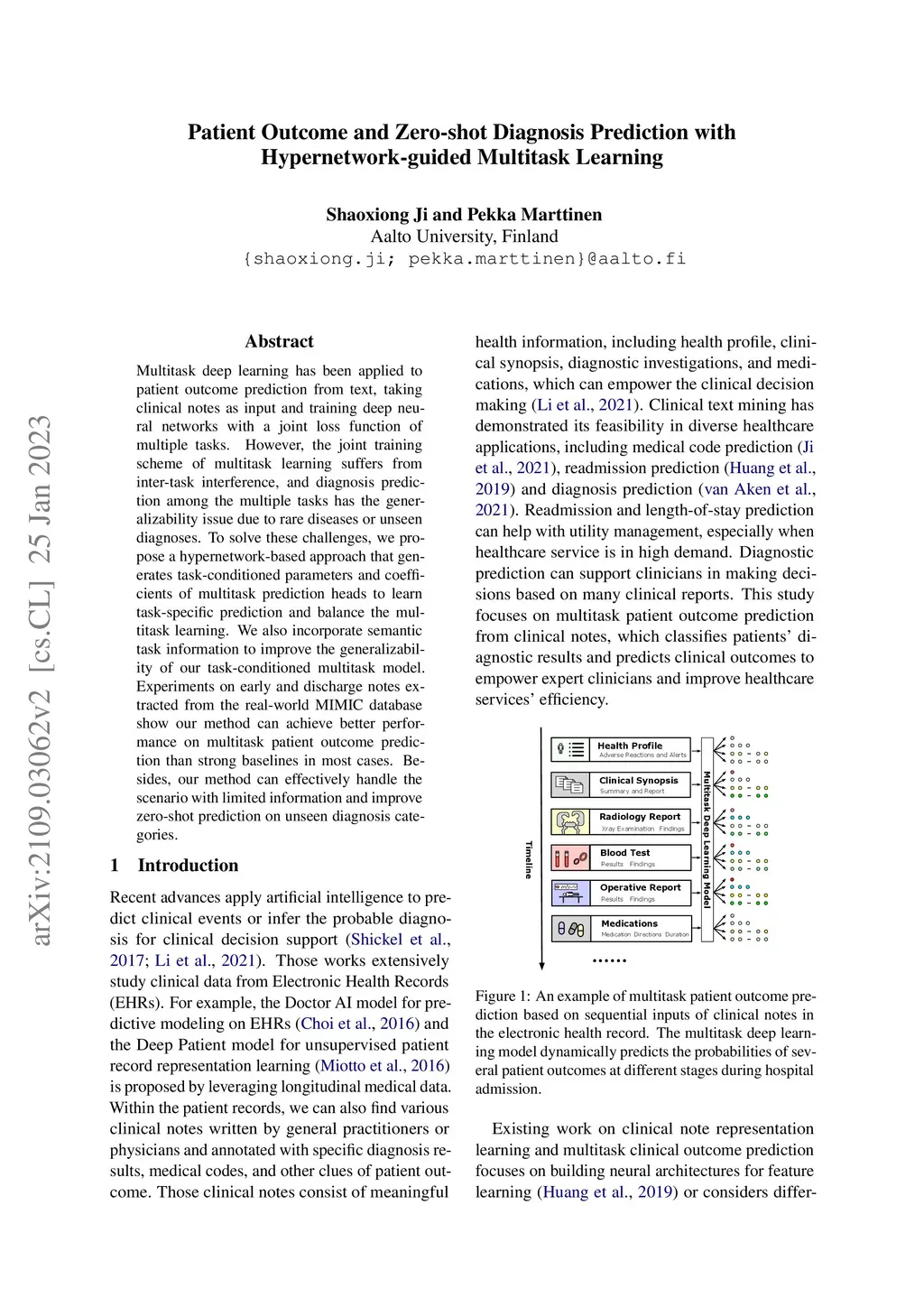 Patient Outcome and Zero-shot Diagnosis Prediction with