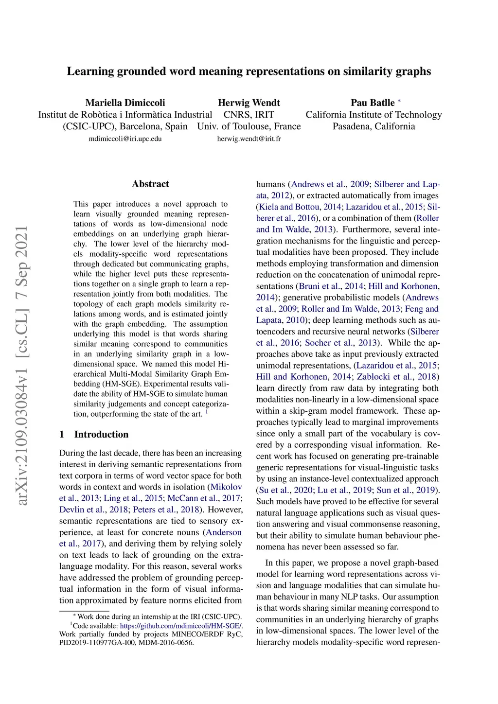Learning grounded word meaning representations on similarity graphs