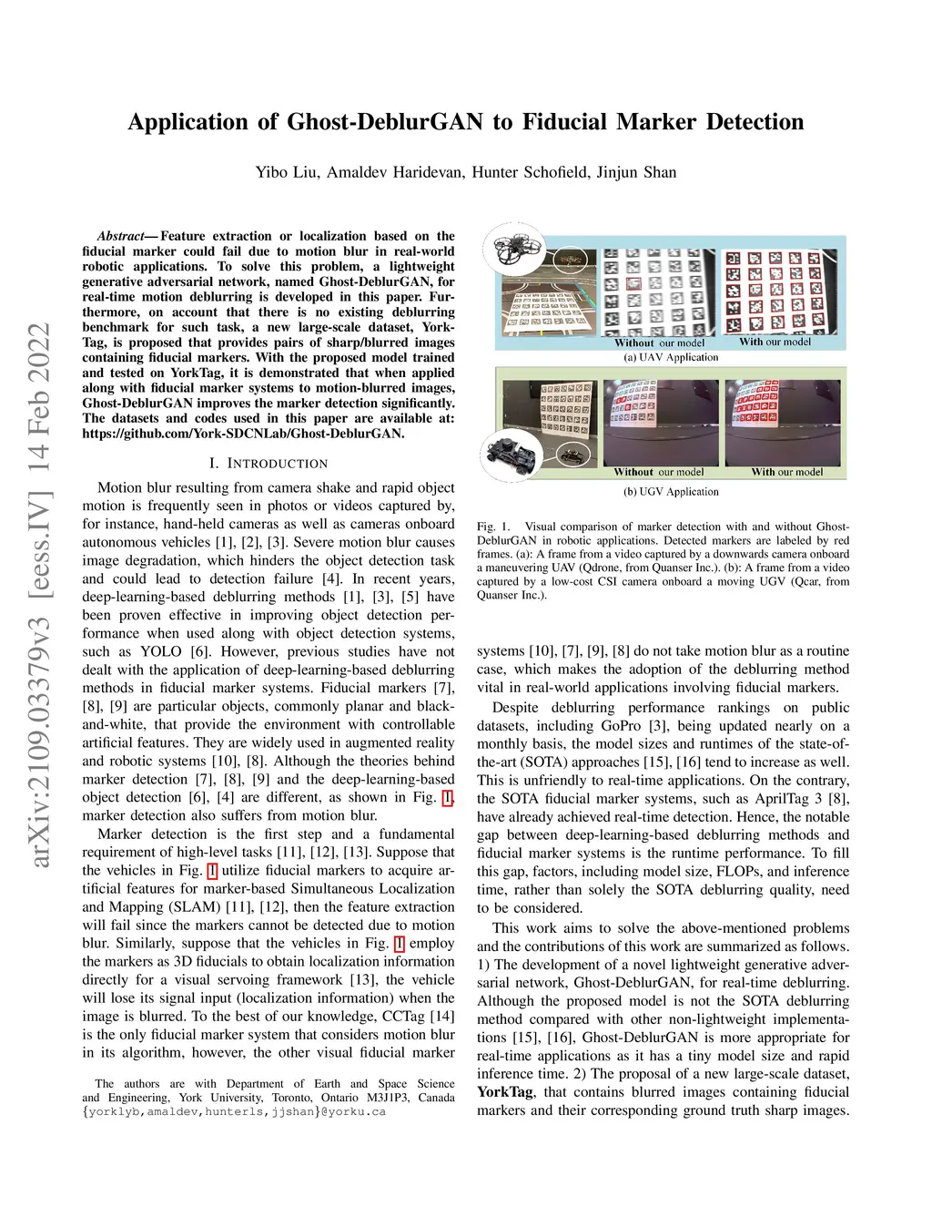 Application of Ghost-DeblurGAN to Fiducial Marker Detection