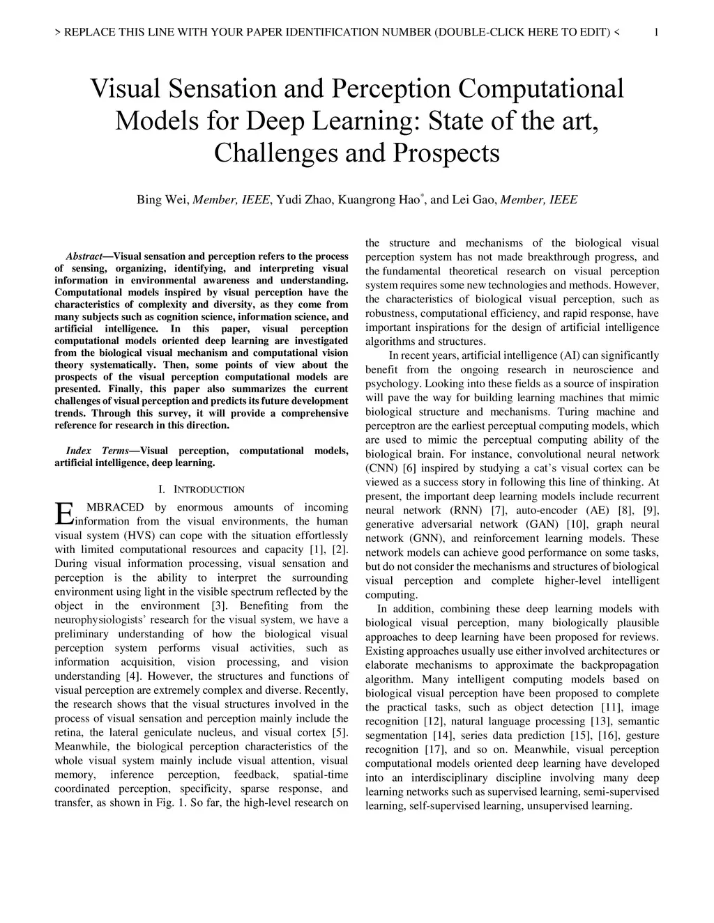 Visual Sensation and Perception Computational Models for Deep Learning: