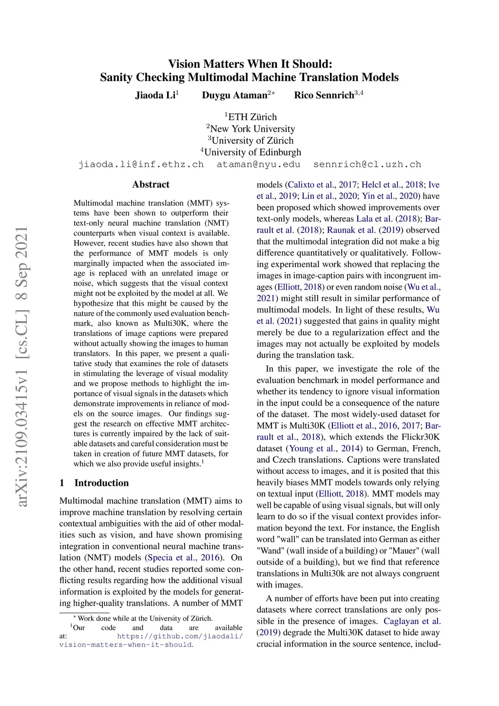 Vision Matters When It Should: Sanity Checking Multimodal Machine