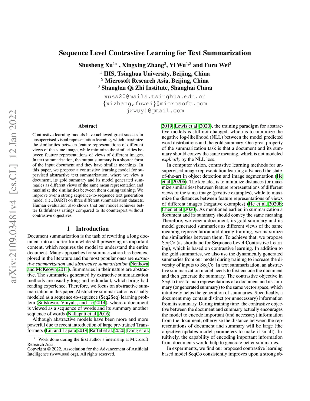 Sequence Level Contrastive Learning for Text Summarization