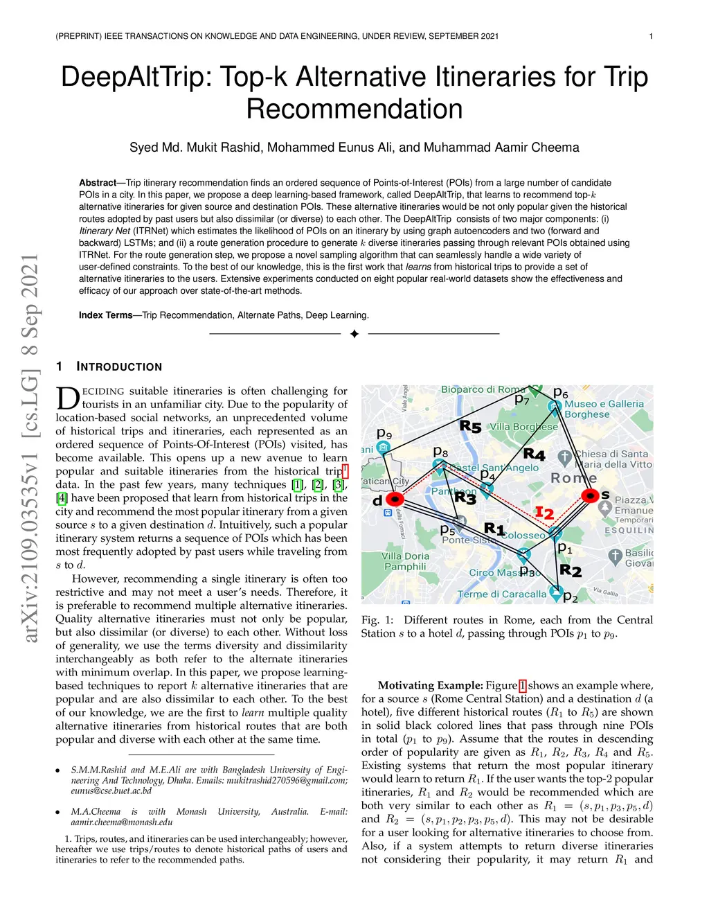 DeepAltTrip: Top-k Alternative Itineraries for Trip Recommendation