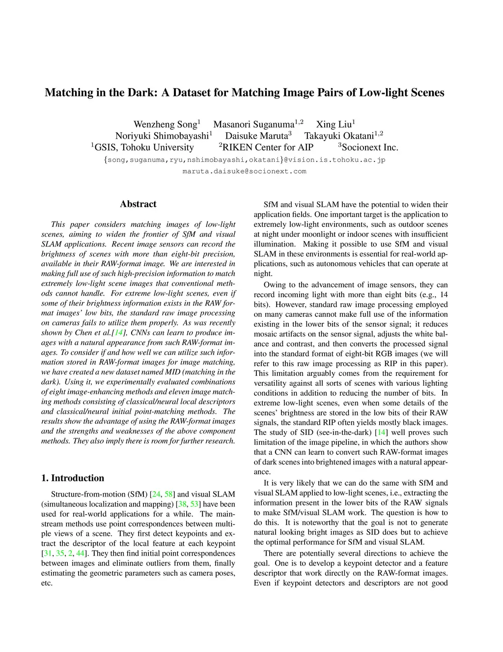 Matching in the Dark: A Dataset for Matching Image Pairs of Low-light