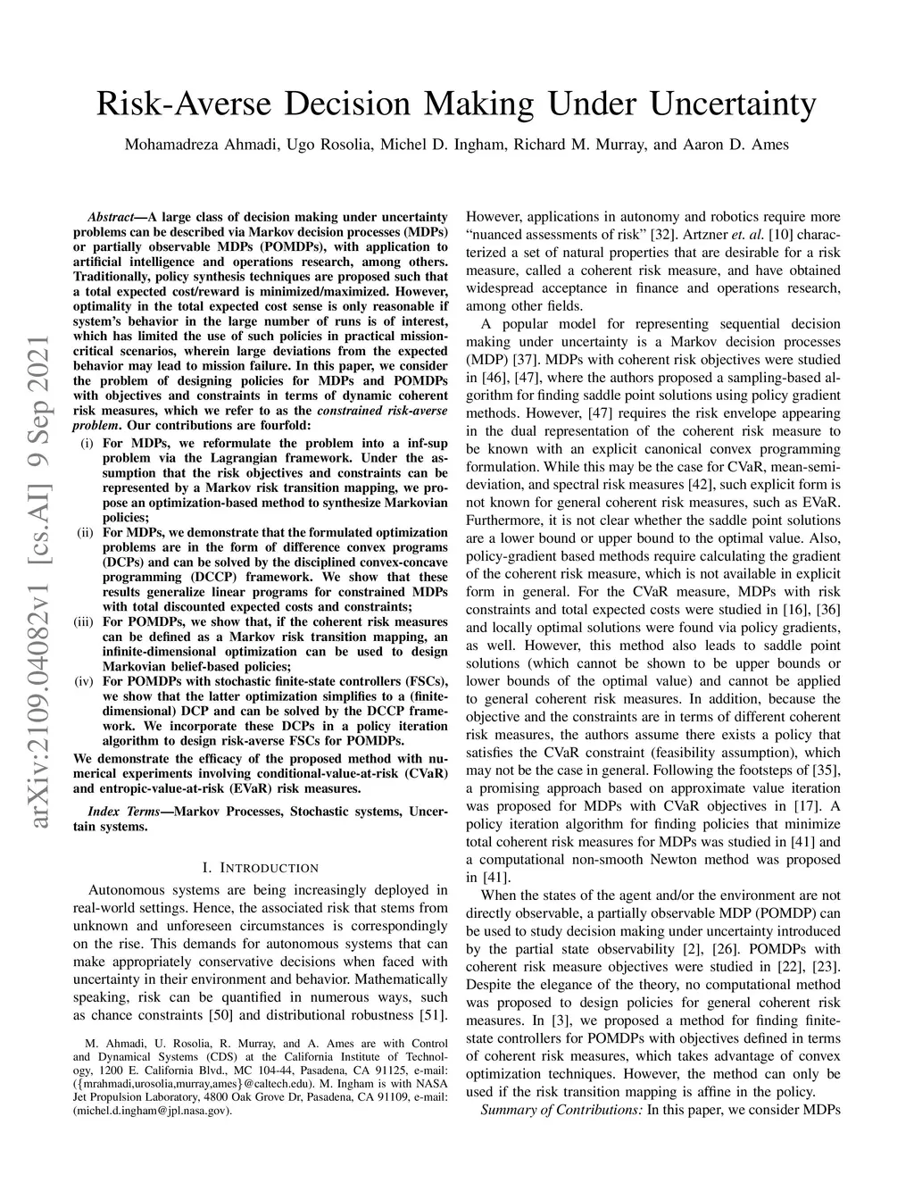 Risk-Averse Decision Making Under Uncertainty