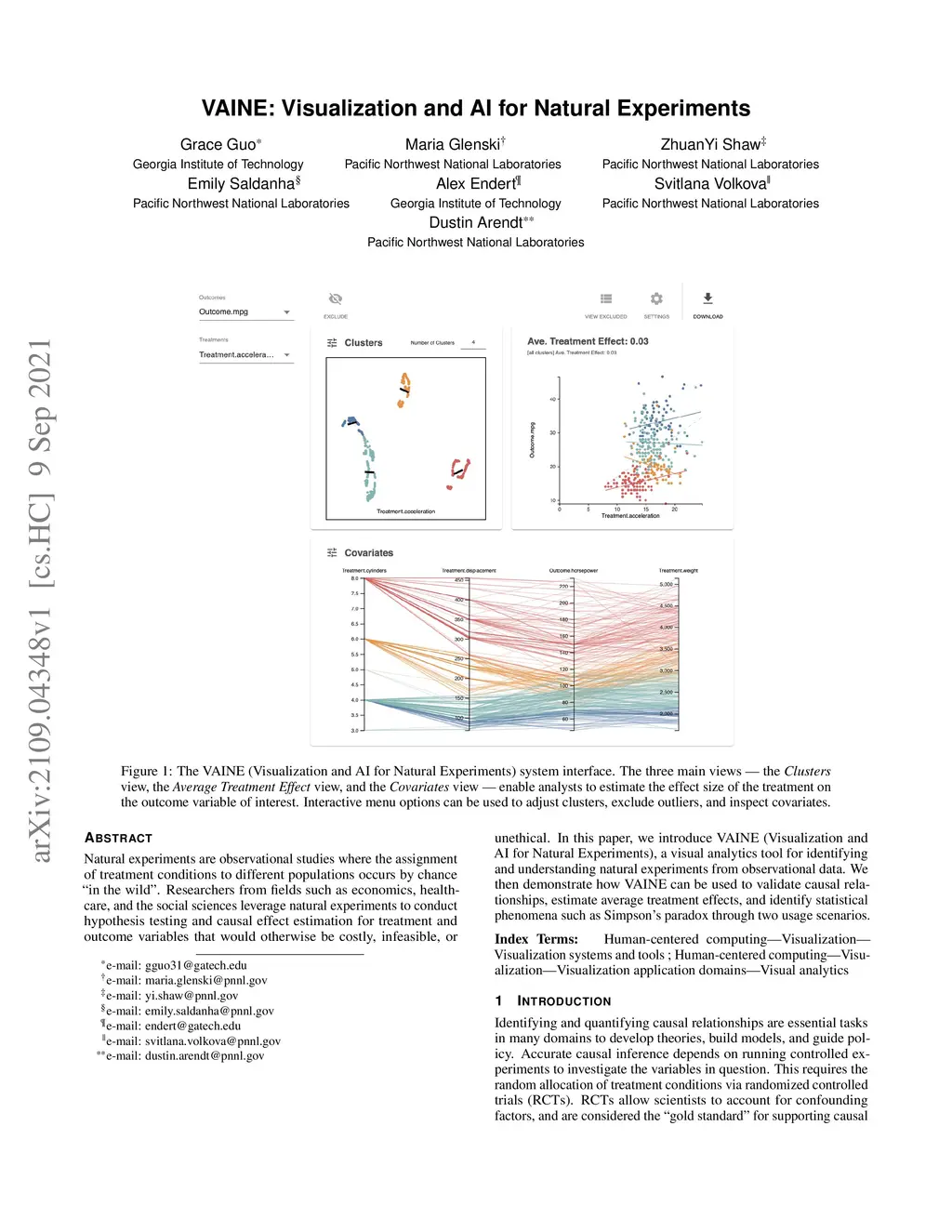 Natural experiments are observational studies where the assignment of treatment conditions to different populations occurs by chance "in the wild". Researchers from fields such as economics, healthcare, and the social sciences leverage natural experiments to conduct hypothesis testing and causal effect estimation for treatment and outcome variables that would otherwise be costly, infeasible, or unethical. In this paper, we introduce VAINE (Visualization and AI for Natural Experiments), a visual analytics tool for identifying and understanding natural experiments from observational data. We then demonstrate how VAINE can be used to validate causal relationships, estimate average treatment effects, and identify statistical phenomena such as Simpson's paradox through two usage scenarios.
