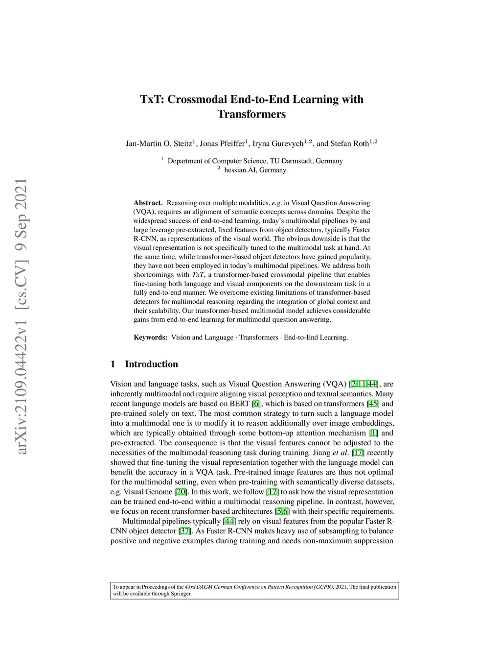 TxT: Crossmodal End-to-End Learning with Transformers