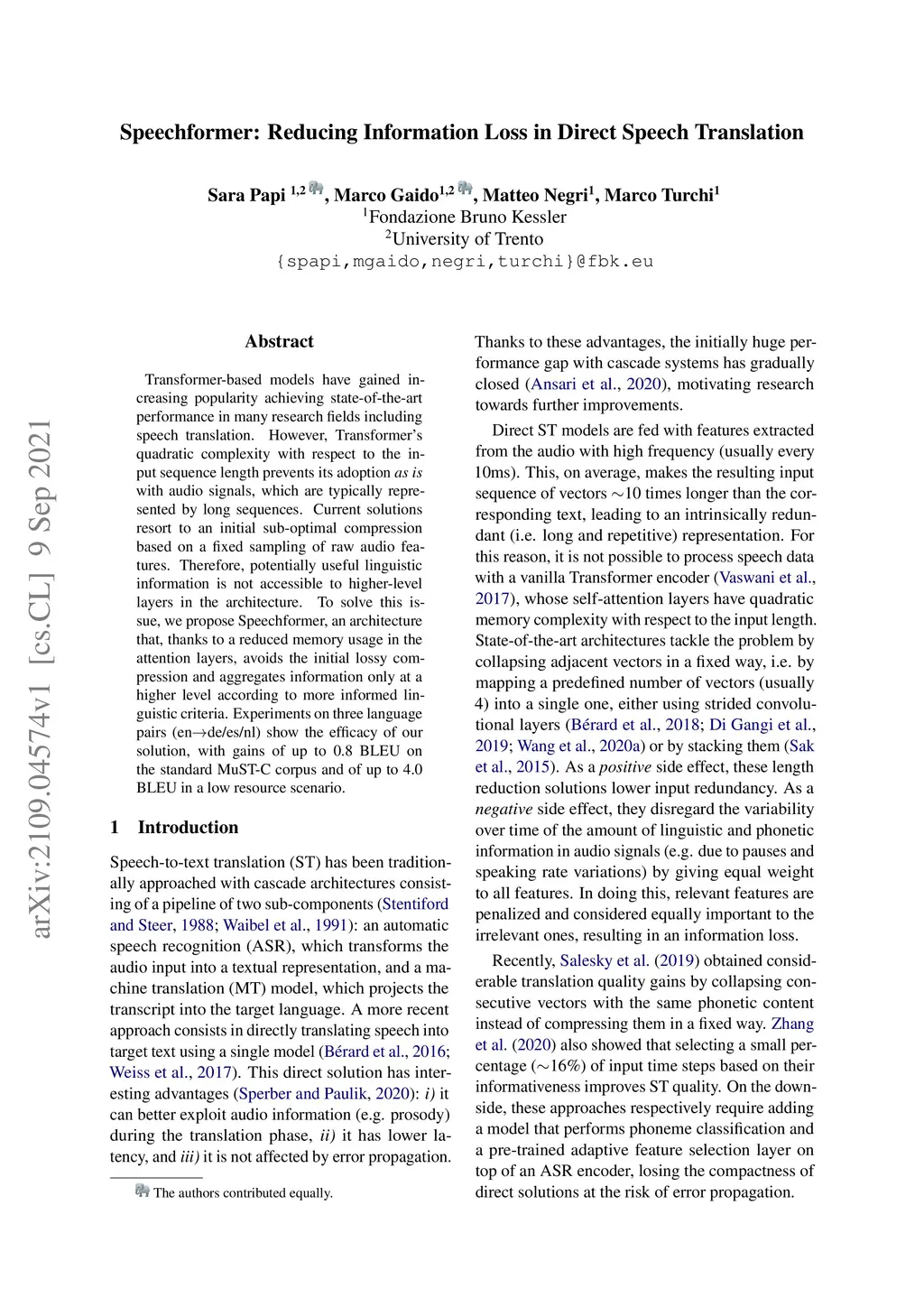 Speechformer: Reducing Information Loss in Direct Speech Translation