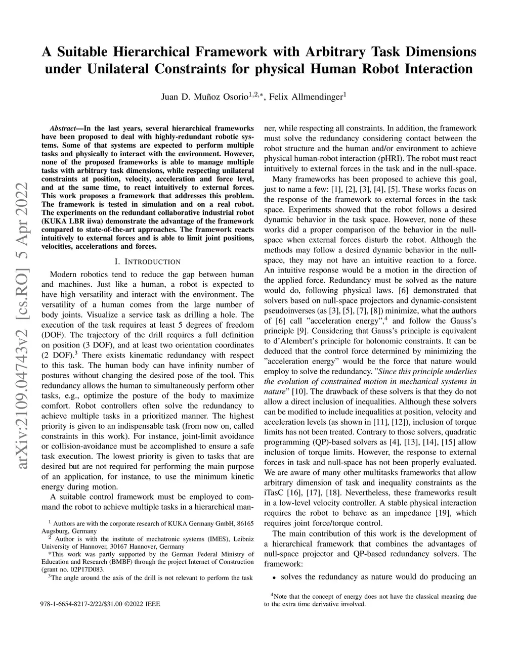 In the last years, several hierarchical frameworks have been proposed to deal with highly-redundant robotic systems. Some of that systems are expected to perform multiple tasks and physically to interact with the environment. However, none of the proposed frameworks is able to manage multiple tasks with arbitrary task dimensions, while respecting unilateral constraints at position, velocity, acceleration and force level, and at the same time, to react intuitively to external forces. This work proposes a framework that addresses this problem. The framework is tested in simulation and on a real robot. The experiments on the redundant collaborative industrial robot (KUKA LBR iiwa) demonstrate the advantage of the framework compared to state-of-the-art approaches. The framework reacts intuitively to external forces and is able to limit joint positions, velocities, accelerations and forces.