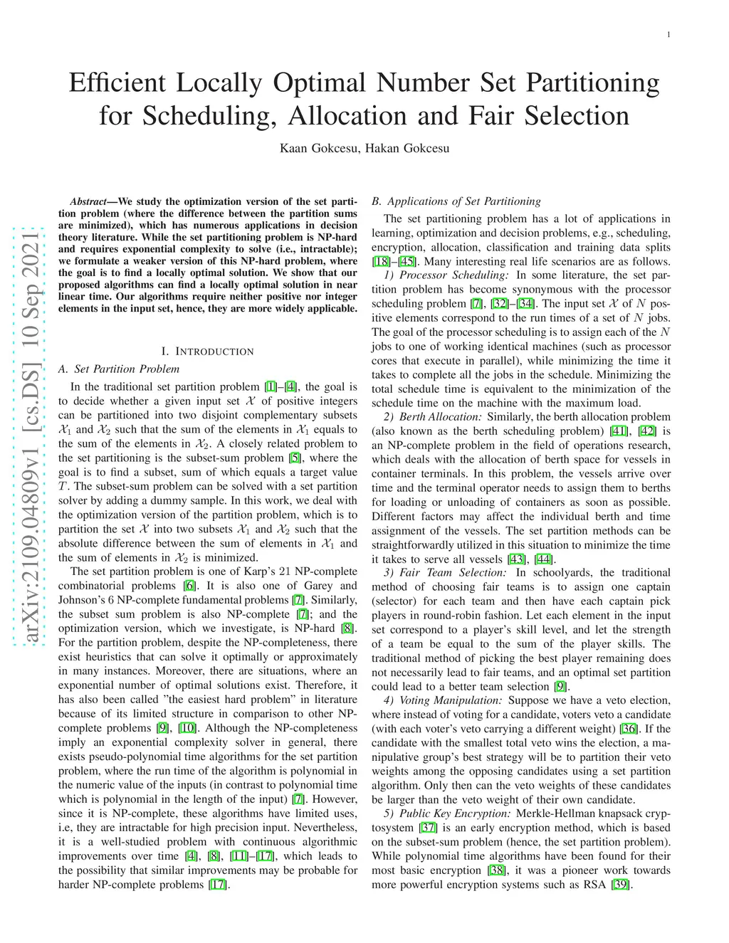 Efficient Locally Optimal Number Set Partitioning for Scheduling,