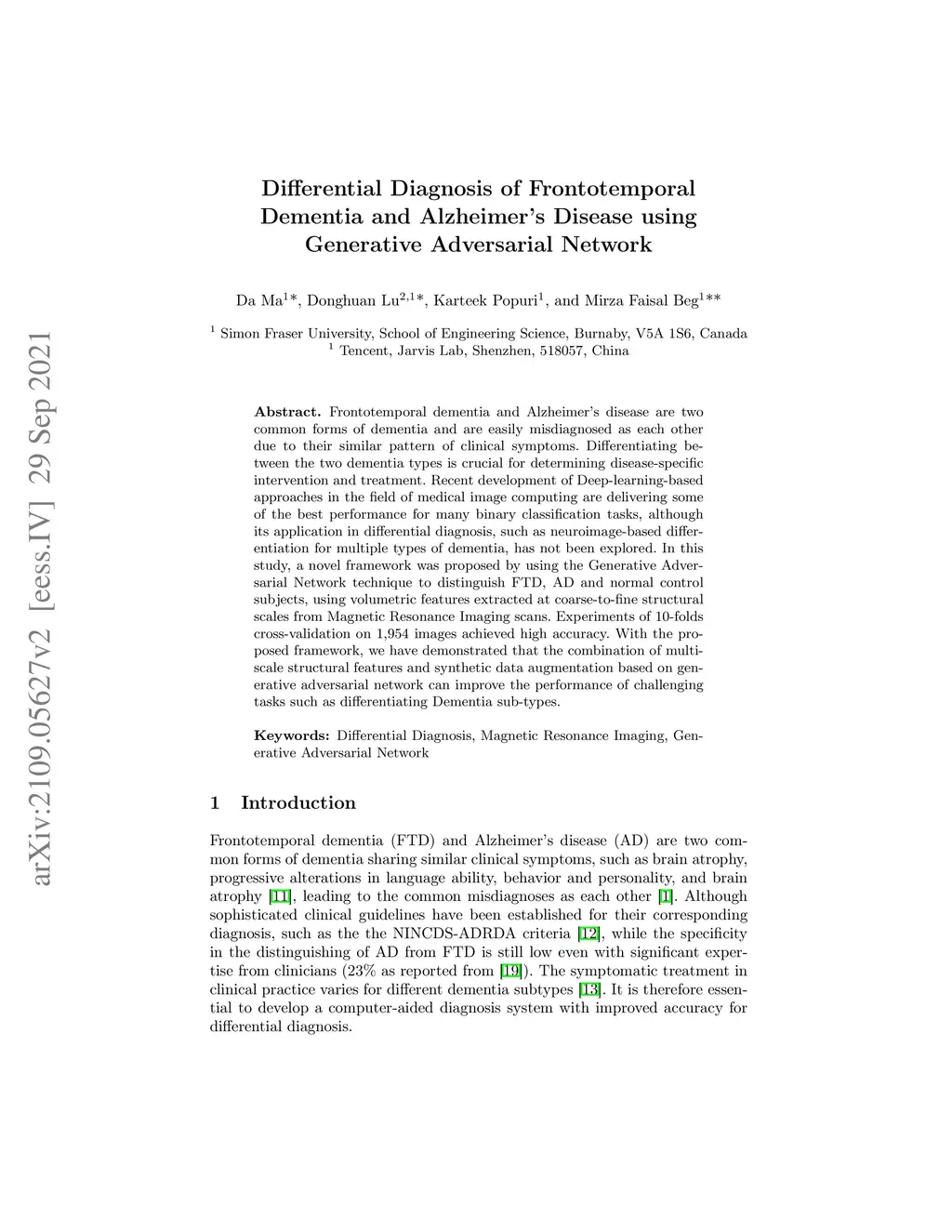 Differential Diagnosis of Frontotemporal Dementia and Alzheimer's