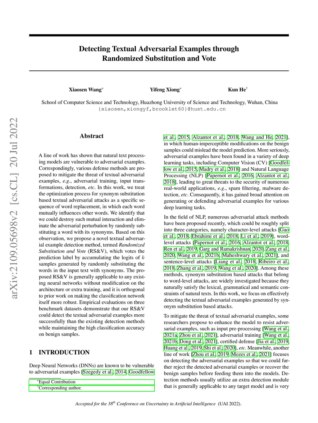 Detecting Textual Adversarial Examples through Randomized Substitution