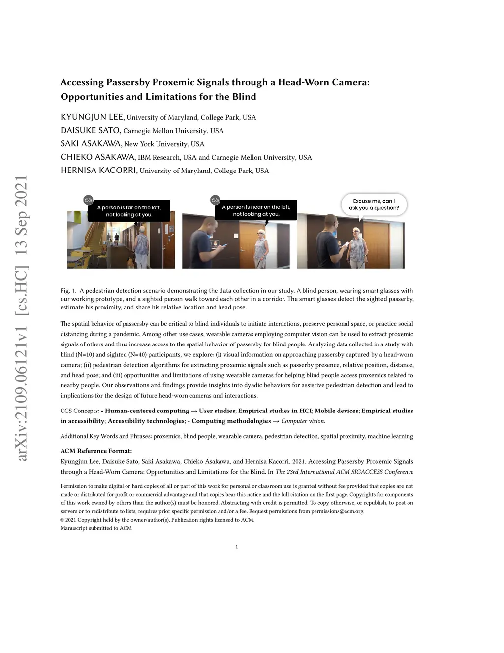 Accessing Passersby Proxemic Signals through a Head-Worn Camera: