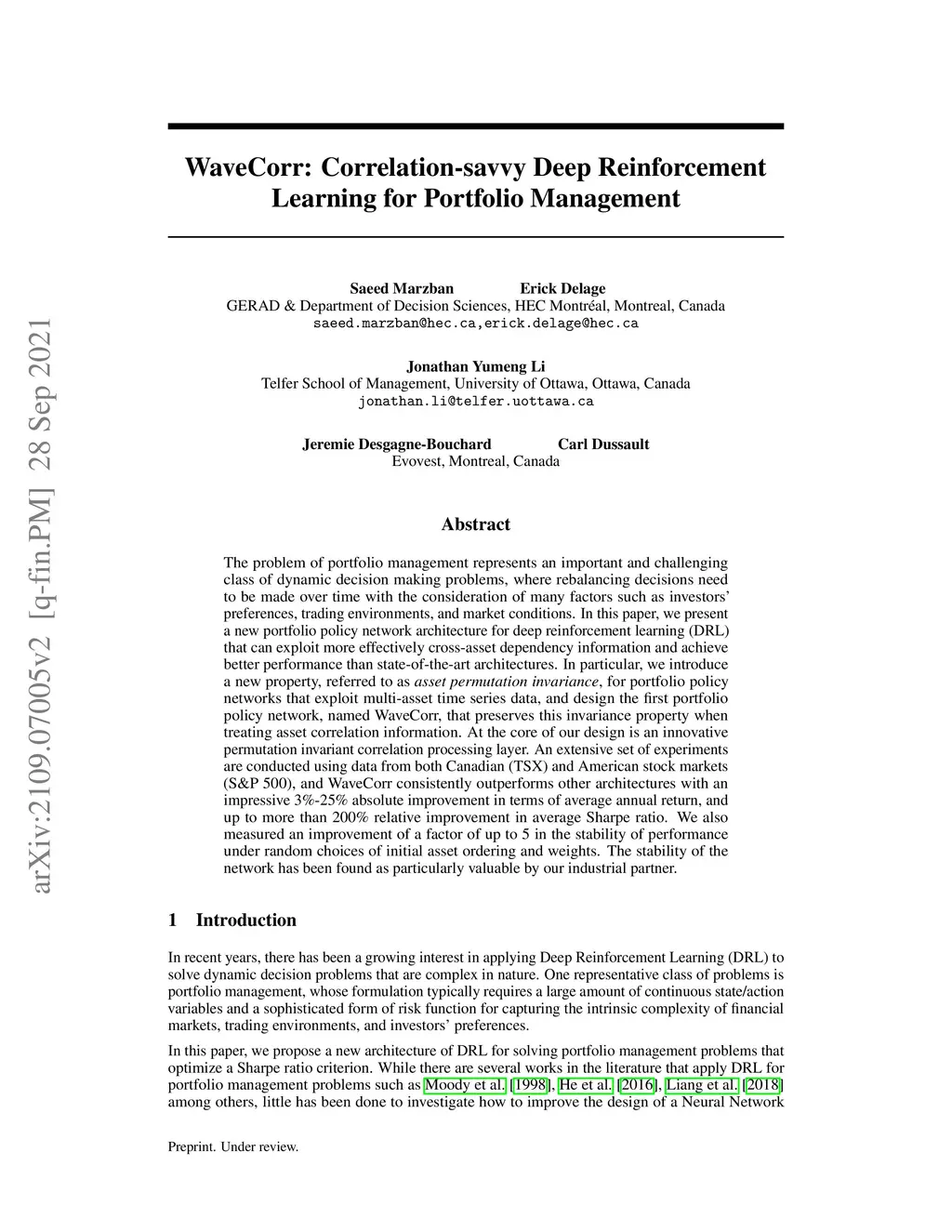 WaveCorr: Correlation-savvy Deep Reinforcement Learning for Portfolio