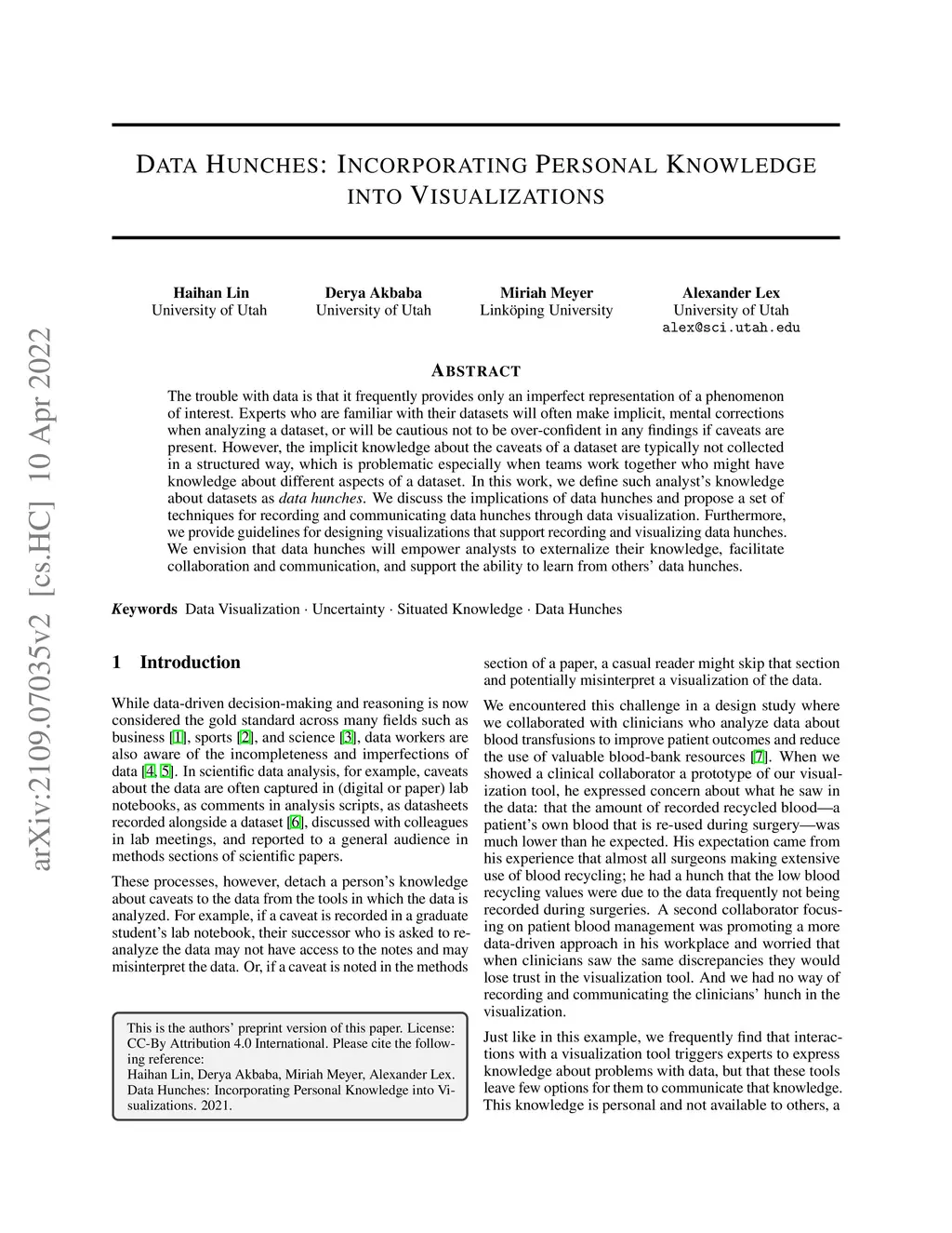 Data Hunches: Incorporating Personal Knowledge into Visualizations