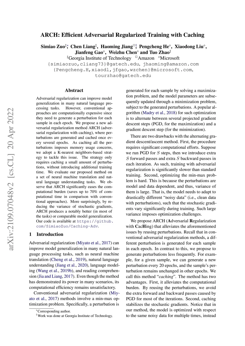 ARCH: Efficient Adversarial Regularized Training with Caching