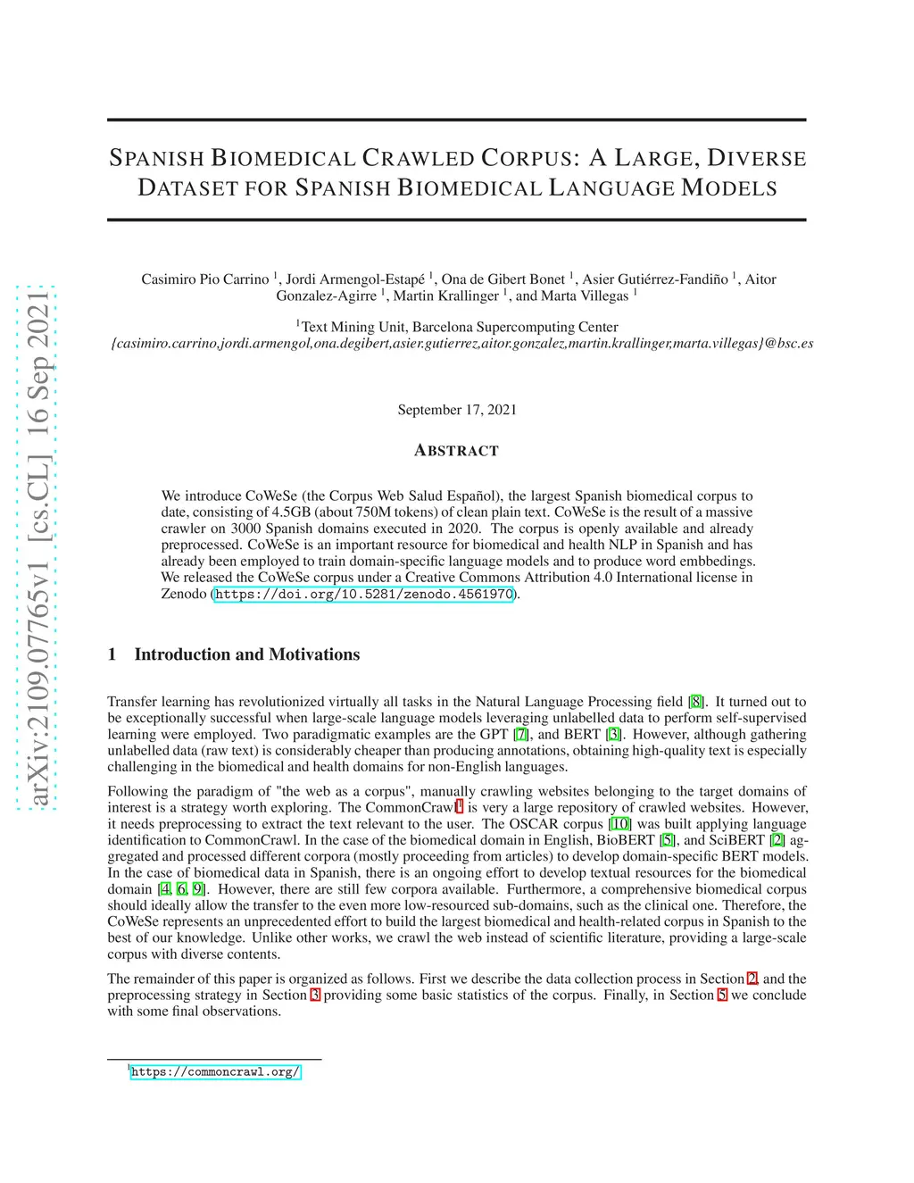 Spanish Biomedical Crawled Corpus: A Large, Diverse Dataset for Spanish