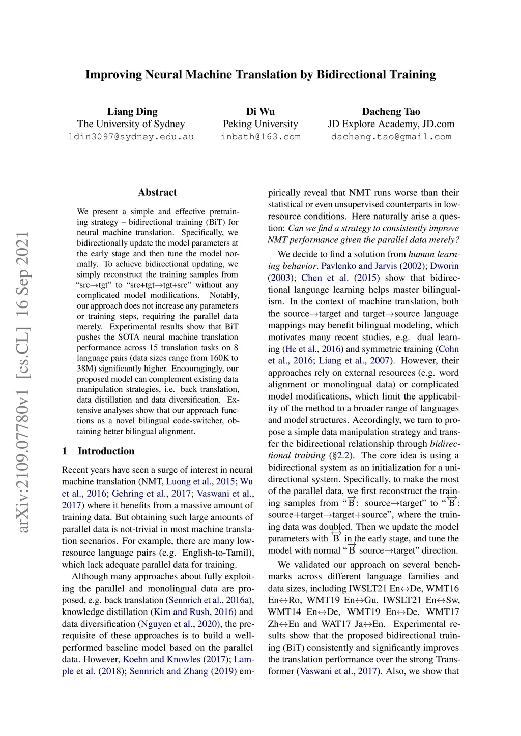 Improving Neural Machine Translation by Bidirectional Training