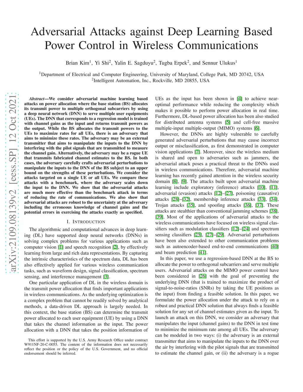 We consider adversarial machine learning based attacks on power allocation where the base station (BS) allocates its transmit power to multiple orthogonal subcarriers by using a deep neural network (DNN) to serve multiple user equipments (UEs). The DNN that corresponds to a regression model is trained with channel gains as the input and returns transmit powers as the output. While the BS allocates the transmit powers to the UEs to maximize rates for all UEs, there is an adversary that aims to minimize these rates. The adversary may be an external transmitter that aims to manipulate the inputs to the DNN by interfering with the pilot signals that are transmitted to measure the channel gain. Alternatively, the adversary may be a rogue UE that transmits fabricated channel estimates to the BS. In both cases, the adversary carefully crafts adversarial perturbations to manipulate the inputs to the DNN of the BS subject to an upper bound on the strengths of these perturbations. We consider the attacks targeted on a single UE or all UEs. We compare these attacks with a benchmark, where the adversary scales down the input to the DNN. We show that the adversarial attacks are much more effective than the benchmark attack in terms of reducing the rate of communications. We also show that adversarial attacks are robust to the uncertainty at the adversary including the erroneous knowledge of channel gains and the potential errors in exercising the attacks exactly as specified.