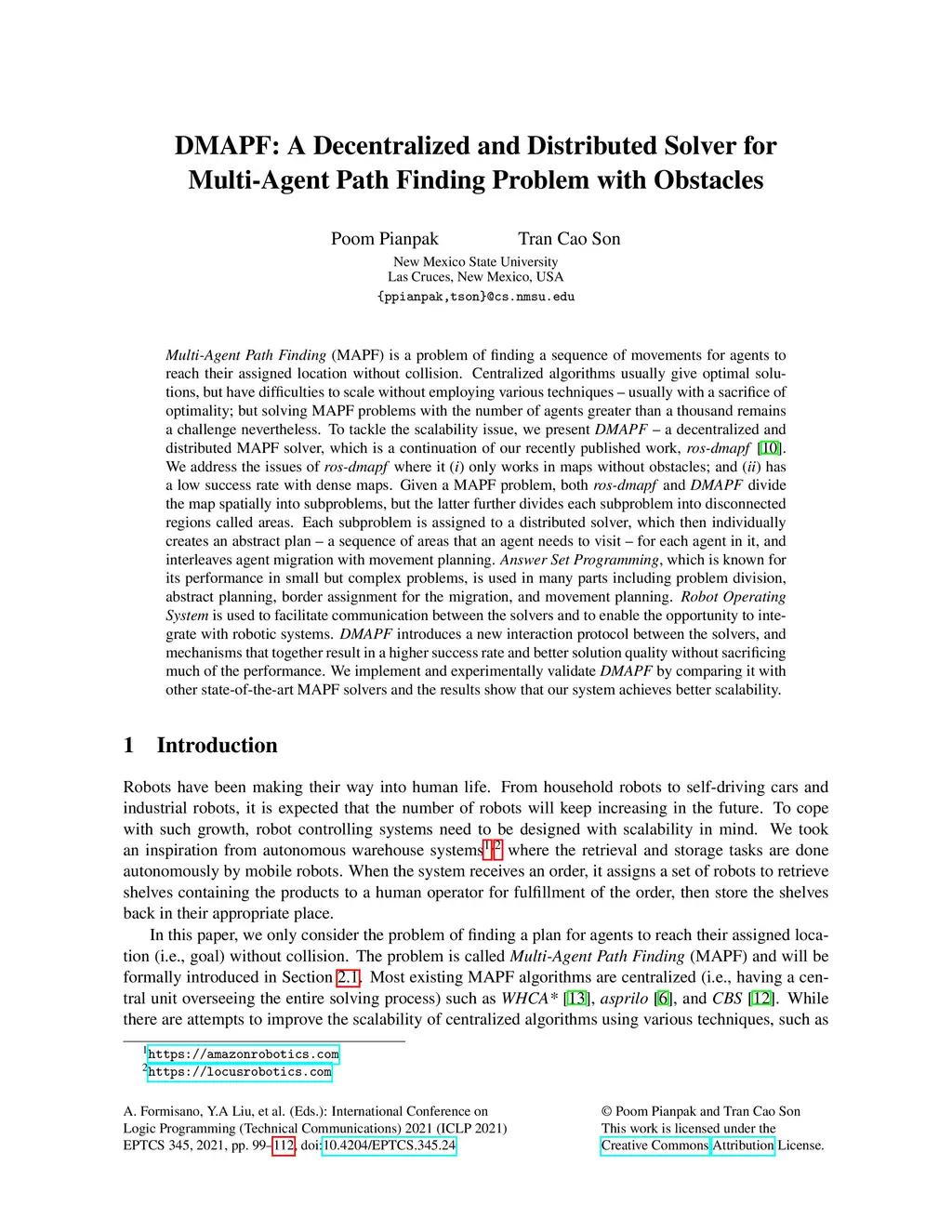 Multi-Agent Path Finding (MAPF) is a problem of finding a sequence of movements for agents to reach their assigned location without collision. Centralized algorithms usually give optimal solutions, but have difficulties to scale without employing various techniques - usually with a sacrifice of optimality; but solving MAPF problems with the number of agents greater than a thousand remains a challenge nevertheless. To tackle the scalability issue, we present DMAPF - a decentralized and distributed MAPF solver, which is a continuation of our recently published work, ros-dmapf. We address the issues of ros-dmapf where it (i) only works in maps without obstacles; and (ii) has a low success rate with dense maps. Given a MAPF problem, both ros-dmapf and DMAPF divide the map spatially into subproblems, but the latter further divides each subproblem into disconnected regions called areas. Each subproblem is assigned to a distributed solver, which then individually creates an abstract plan - a sequence of areas that an agent needs to visit - for each agent in it, and interleaves agent migration with movement planning. Answer Set Programming, which is known for its performance in small but complex problems, is used in many parts including problem division, abstract planning, border assignment for the migration, and movement planning. Robot Operating System is used to facilitate communication between the solvers and to enable the opportunity to integrate with robotic systems. DMAPF introduces a new interaction protocol between the solvers, and mechanisms that together result in a higher success rate and better solution quality without sacrificing much of the performance. We implement and experimentally validate DMAPF by comparing it with other state-of-the-art MAPF solvers and the results show that our system achieves better scalability.