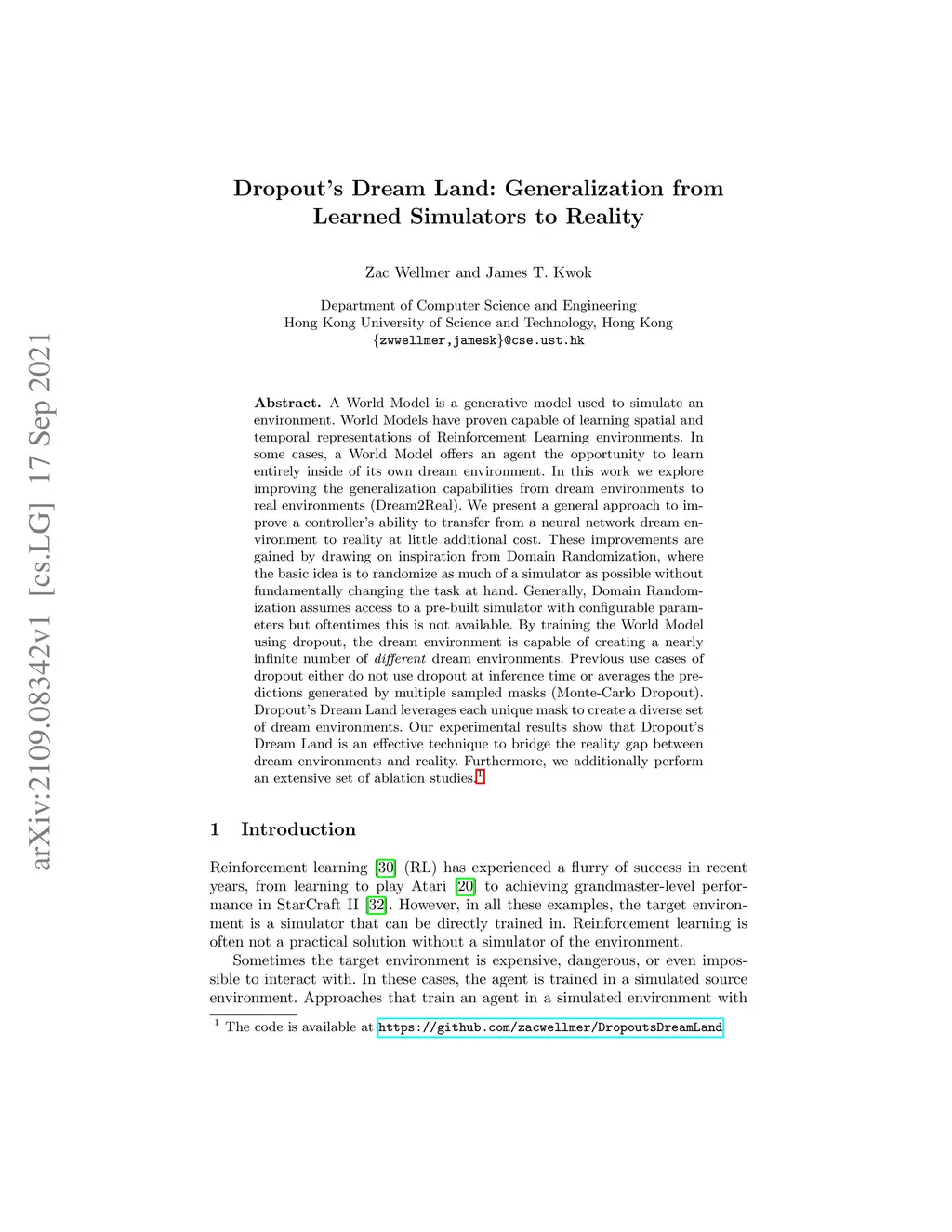 Dropout's Dream Land: Generalization from Learned Simulators to Reality