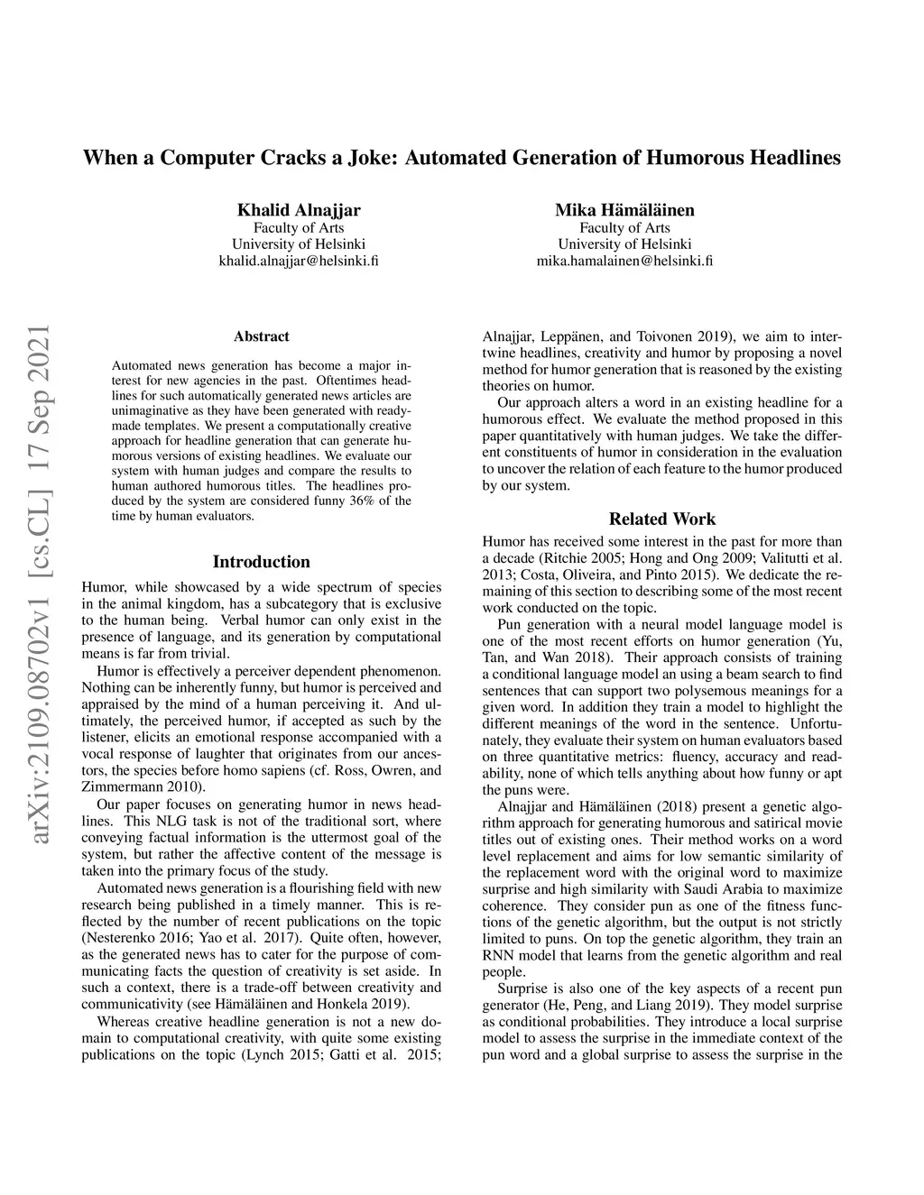 When a Computer Cracks a Joke: Automated Generation of Humorous