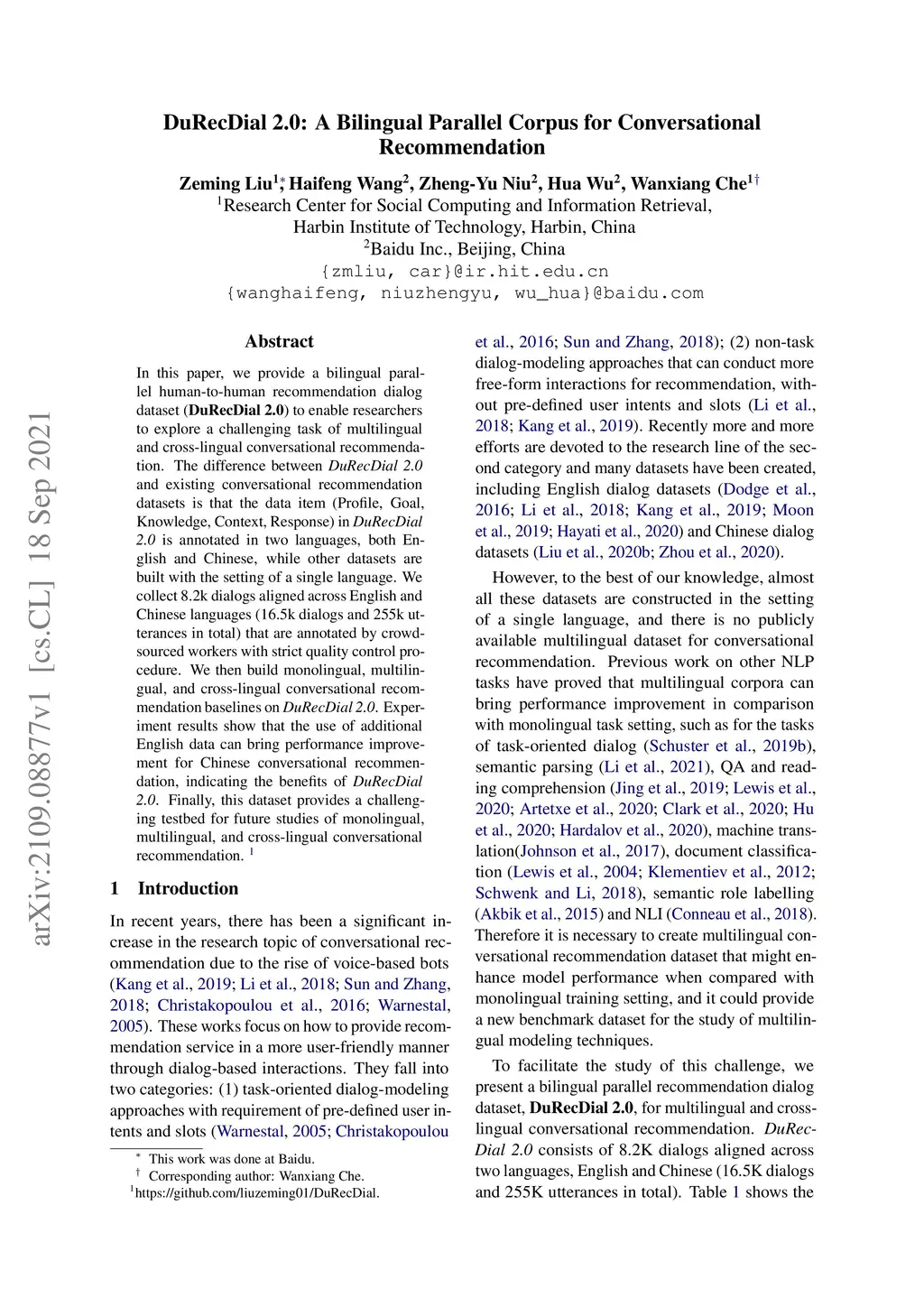 DuRecDial 2.0: A Bilingual Parallel Corpus for Conversational