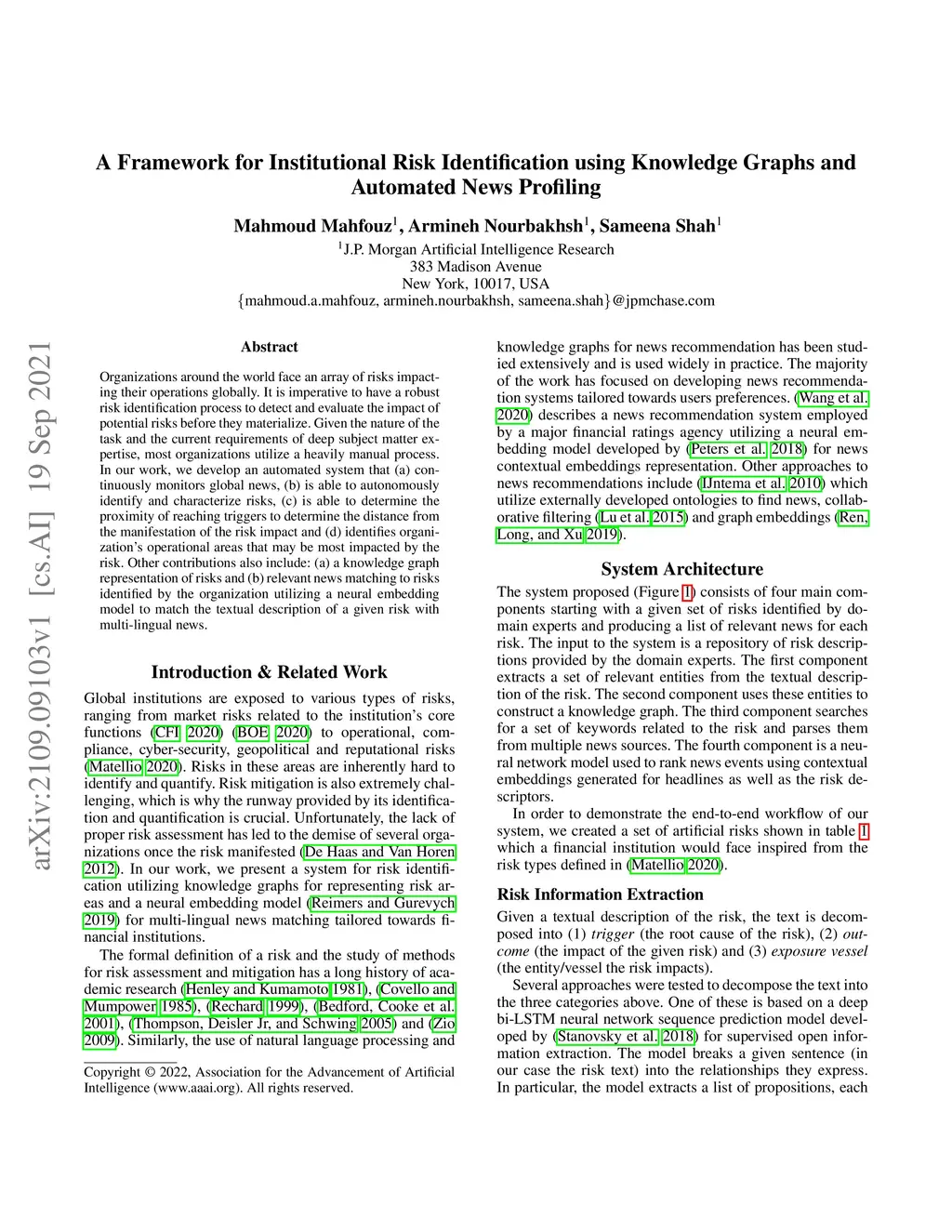 Organizations around the world face an array of risks impacting their operations globally. It is imperative to have a robust risk identification process to detect and evaluate the impact of potential risks before they materialize. Given the nature of the task and the current requirements of deep subject matter expertise, most organizations utilize a heavily manual process. In our work, we develop an automated system that (a) continuously monitors global news, (b) is able to autonomously identify and characterize risks, (c) is able to determine the proximity of reaching triggers to determine the distance from the manifestation of the risk impact and (d) identifies organization's operational areas that may be most impacted by the risk. Other contributions also include: (a) a knowledge graph representation of risks and (b) relevant news matching to risks identified by the organization utilizing a neural embedding model to match the textual description of a given risk with multi-lingual news.
