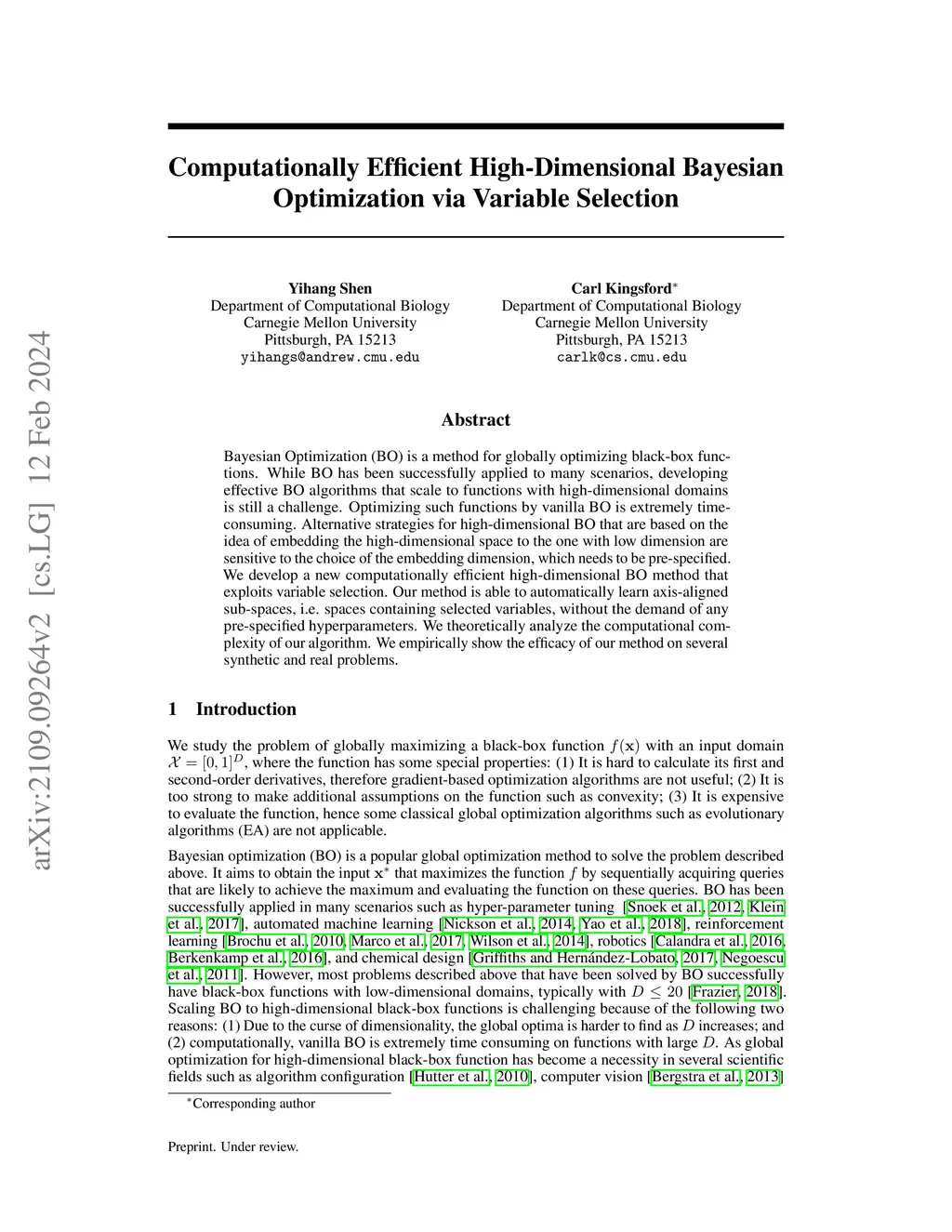Computationally Efficient High-Dimensional Bayesian Optimization via