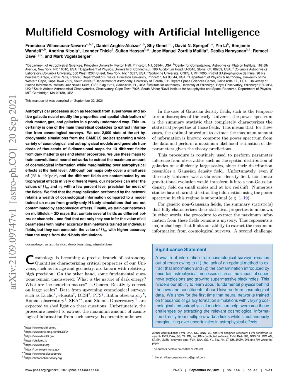 Multifield Cosmology with Artificial Intelligence