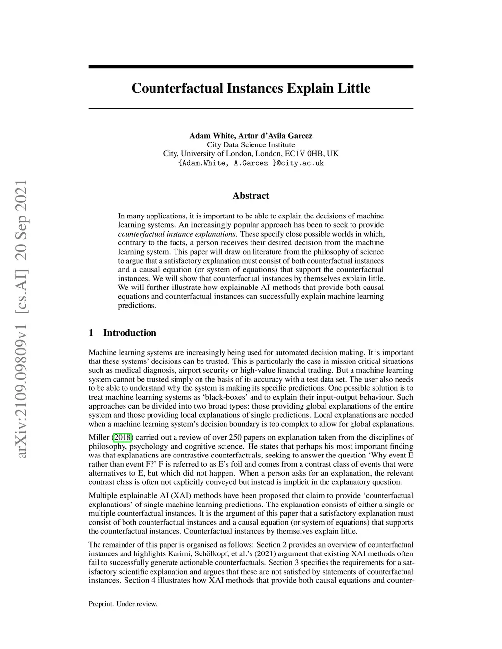 In many applications, it is important to be able to explain the decisions of machine learning systems. An increasingly popular approach has been to seek to provide \emph{counterfactual instance explanations}. These specify close possible worlds in which, contrary to the facts, a person receives their desired decision from the machine learning system. This paper will draw on literature from the philosophy of science to argue that a satisfactory explanation must consist of both counterfactual instances and a causal equation (or system of equations) that support the counterfactual instances. We will show that counterfactual instances by themselves explain little. We will further illustrate how explainable AI methods that provide both causal equations and counterfactual instances can successfully explain machine learning predictions.