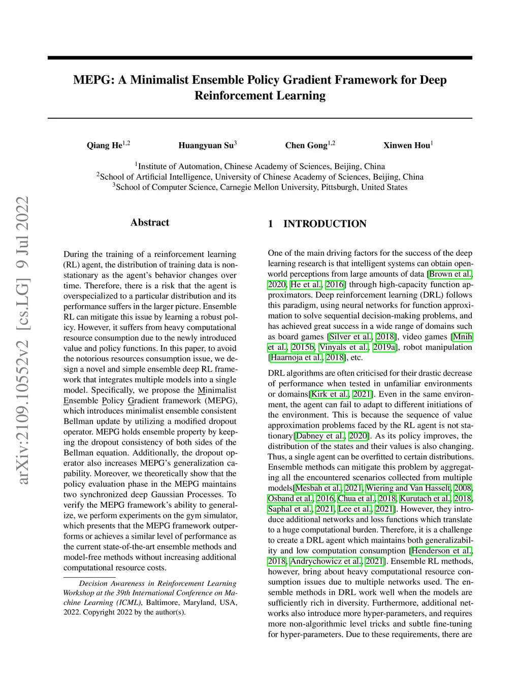 MEPG: A Minimalist Ensemble Policy Gradient Framework for Deep