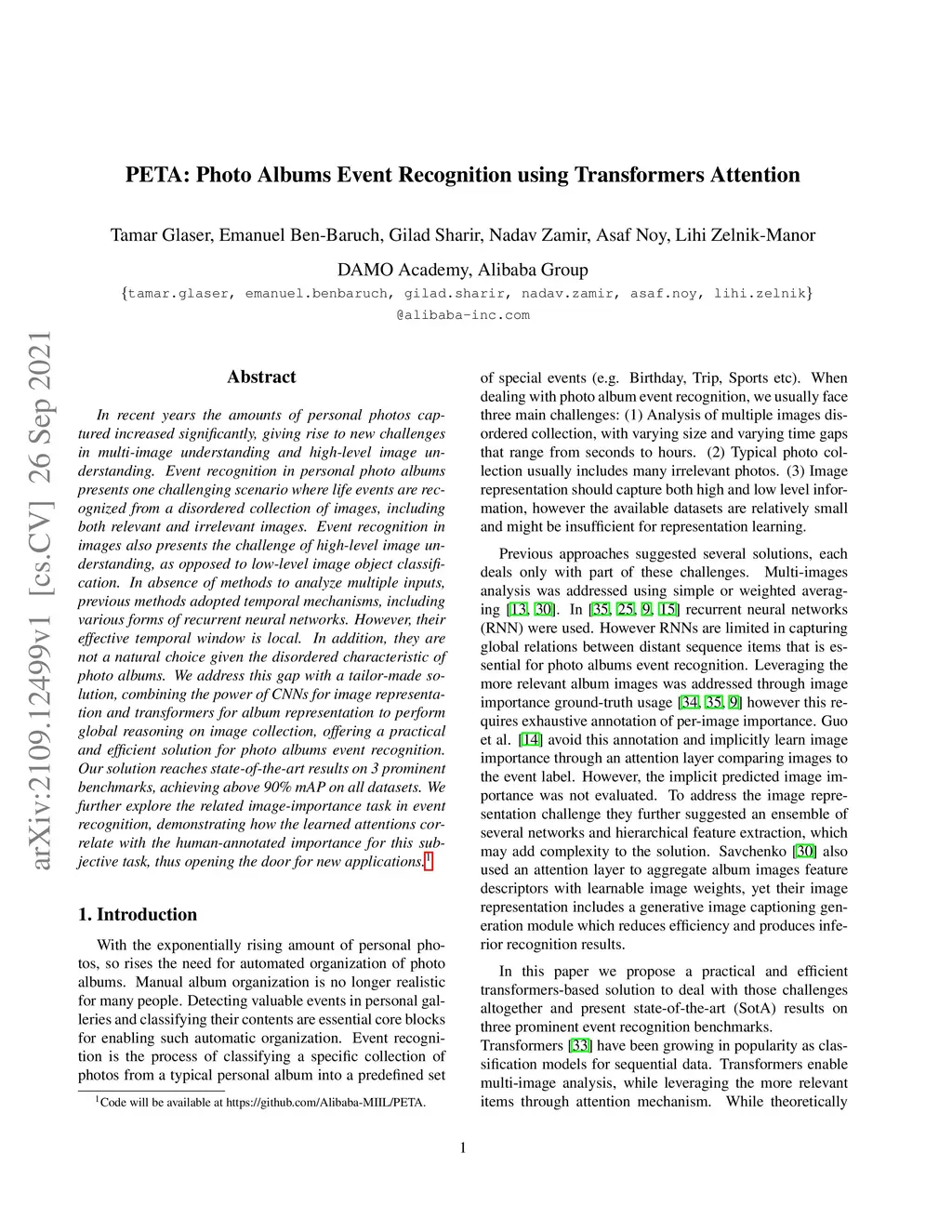 PETA: Photo Albums Event Recognition using Transformers Attention