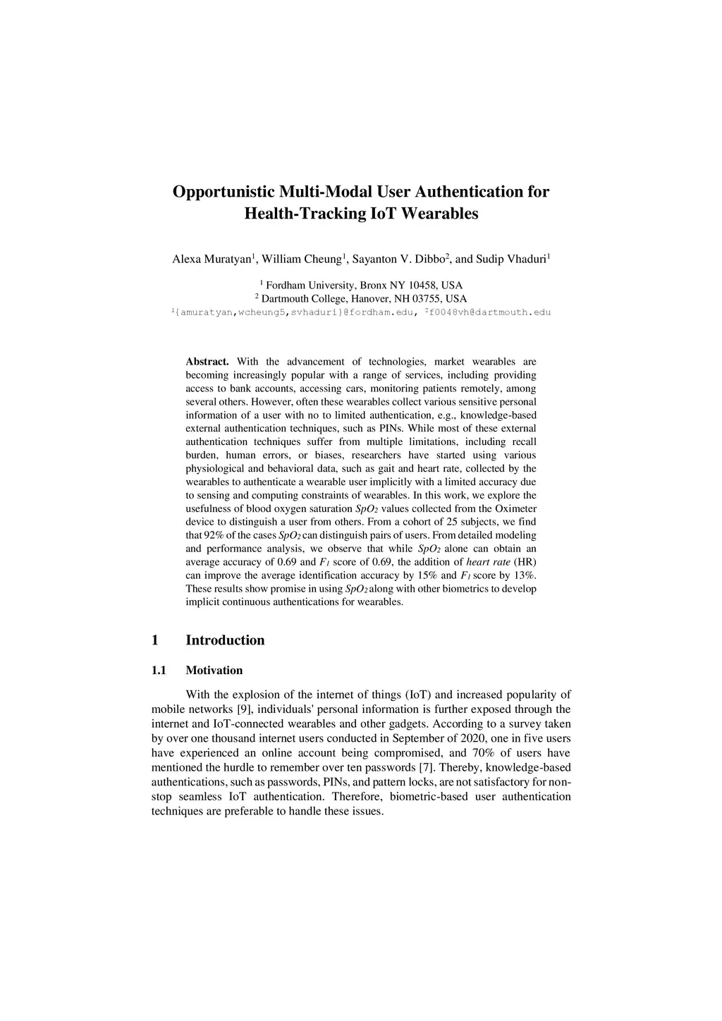 Opportunistic Multi-Modal User Authentication for Health-Tracking IoT
