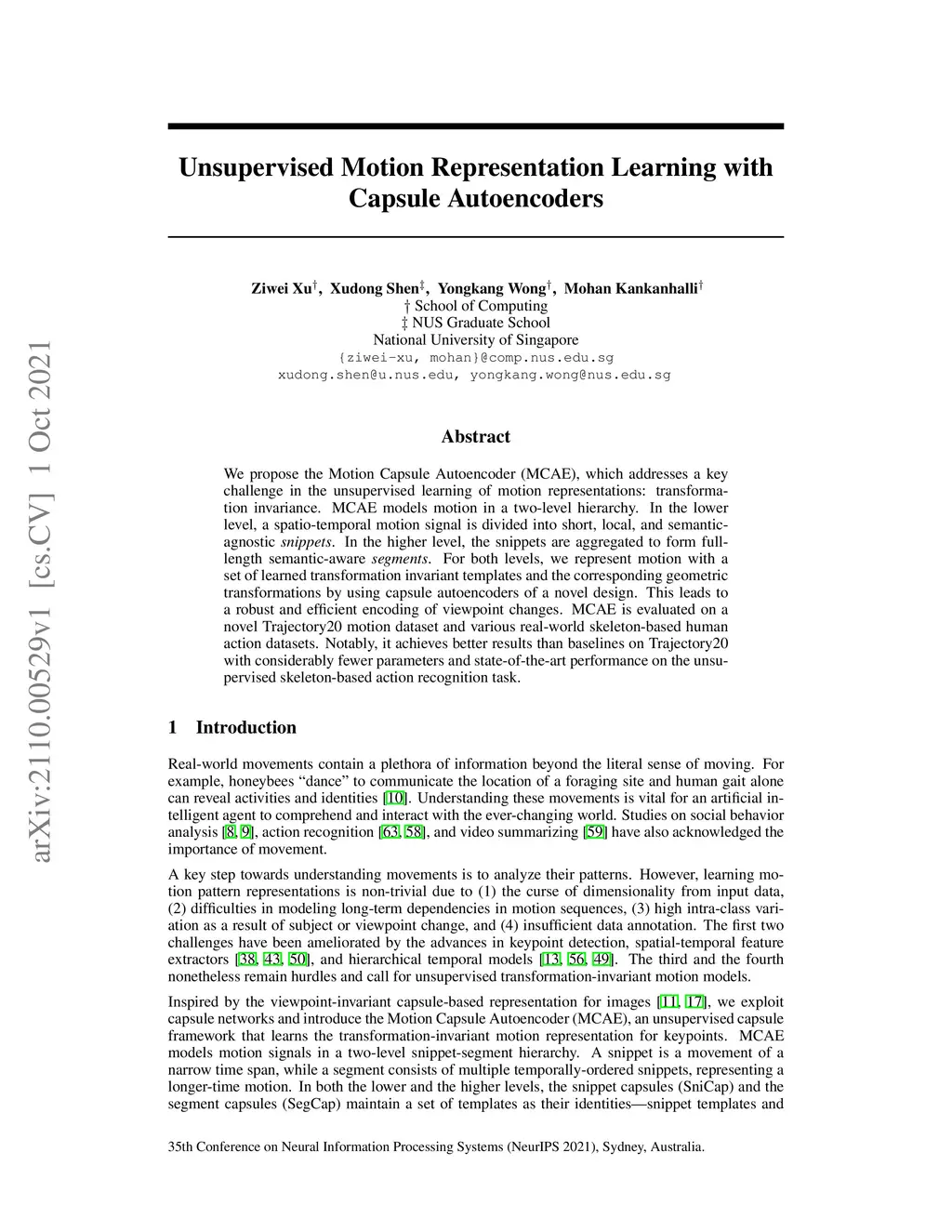Unsupervised Motion Representation Learning with Capsule Autoencoders