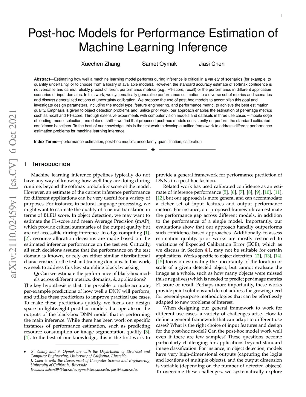 Estimating how well a machine learning model performs during inference is critical in a variety of scenarios (for example, to quantify uncertainty, or to choose from a library of available models). However, the standard accuracy estimate of softmax confidence is not versatile and cannot reliably predict different performance metrics (e.g., F1-score, recall) or the performance in different application scenarios or input domains. In this work, we systematically generalize performance estimation to a diverse set of metrics and scenarios and discuss generalized notions of uncertainty calibration. We propose the use of post-hoc models to accomplish this goal and investigate design parameters, including the model type, feature engineering, and performance metric, to achieve the best estimation quality. Emphasis is given to object detection problems and, unlike prior work, our approach enables the estimation of per-image metrics such as recall and F1-score. Through extensive experiments with computer vision models and datasets in three use cases -- mobile edge offloading, model selection, and dataset shift -- we find that proposed post-hoc models consistently outperform the standard calibrated confidence baselines. To the best of our knowledge, this is the first work to develop a unified framework to address different performance estimation problems for machine learning inference.
