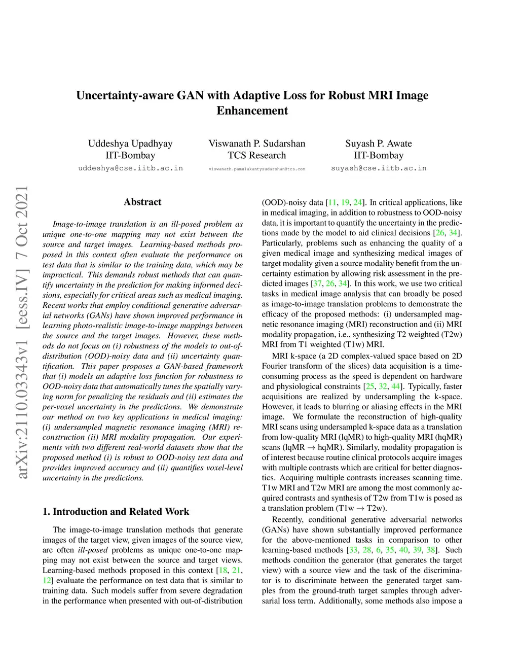 Uncertainty-aware GAN with Adaptive Loss for Robust MRI Image
