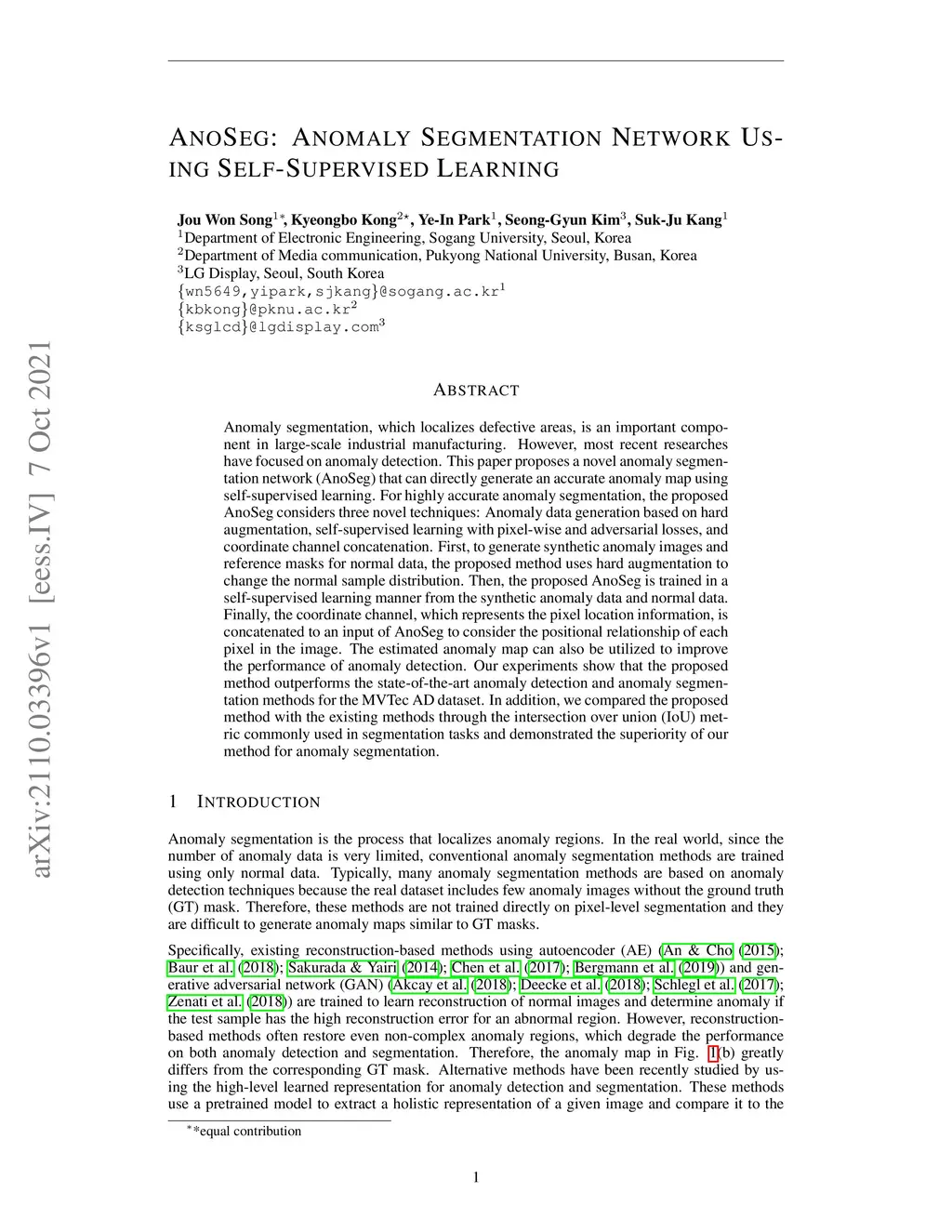 AnoSeg: Anomaly Segmentation Network Using Self-Supervised Learning