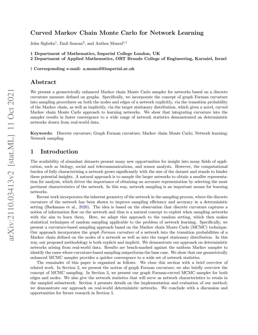 Curved Markov Chain Monte Carlo for Network Learning